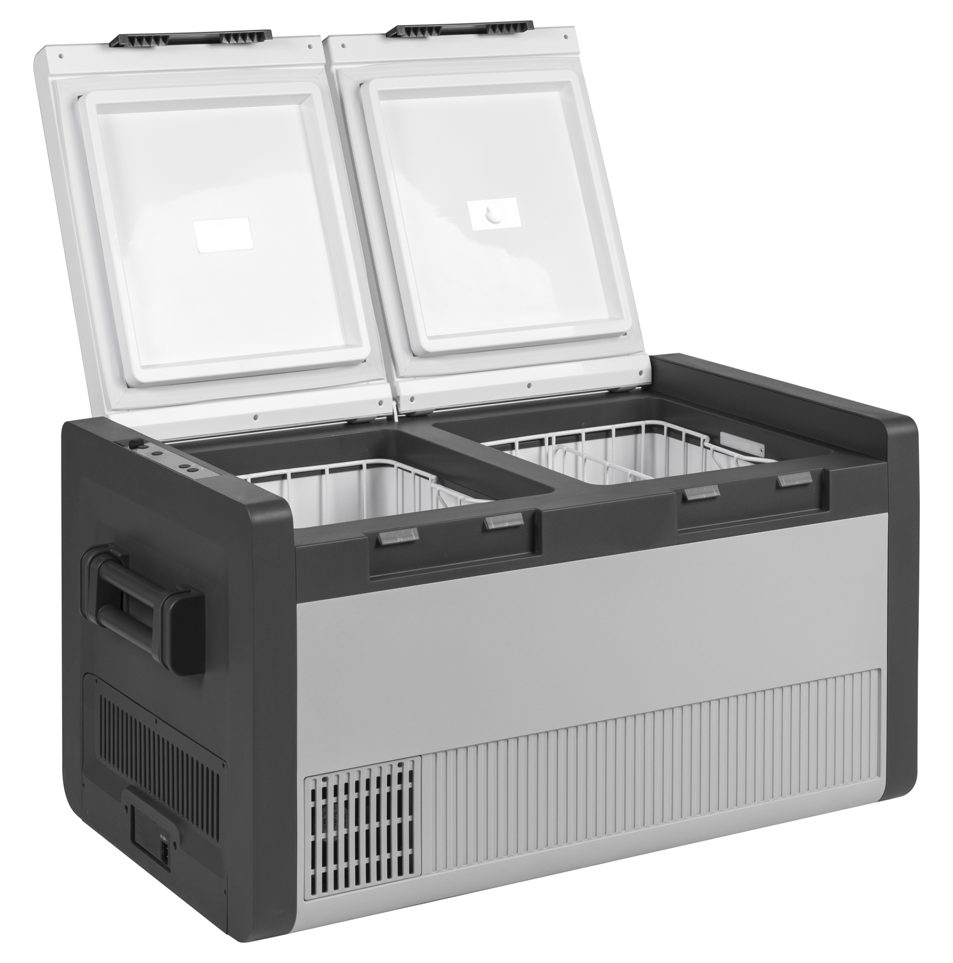 Velkoobjemová kompresorová chladnička s dvojitou zónou a kapacitou 73 l. Chladí až do -20 °C, má digitální ovládání a tichý provoz.