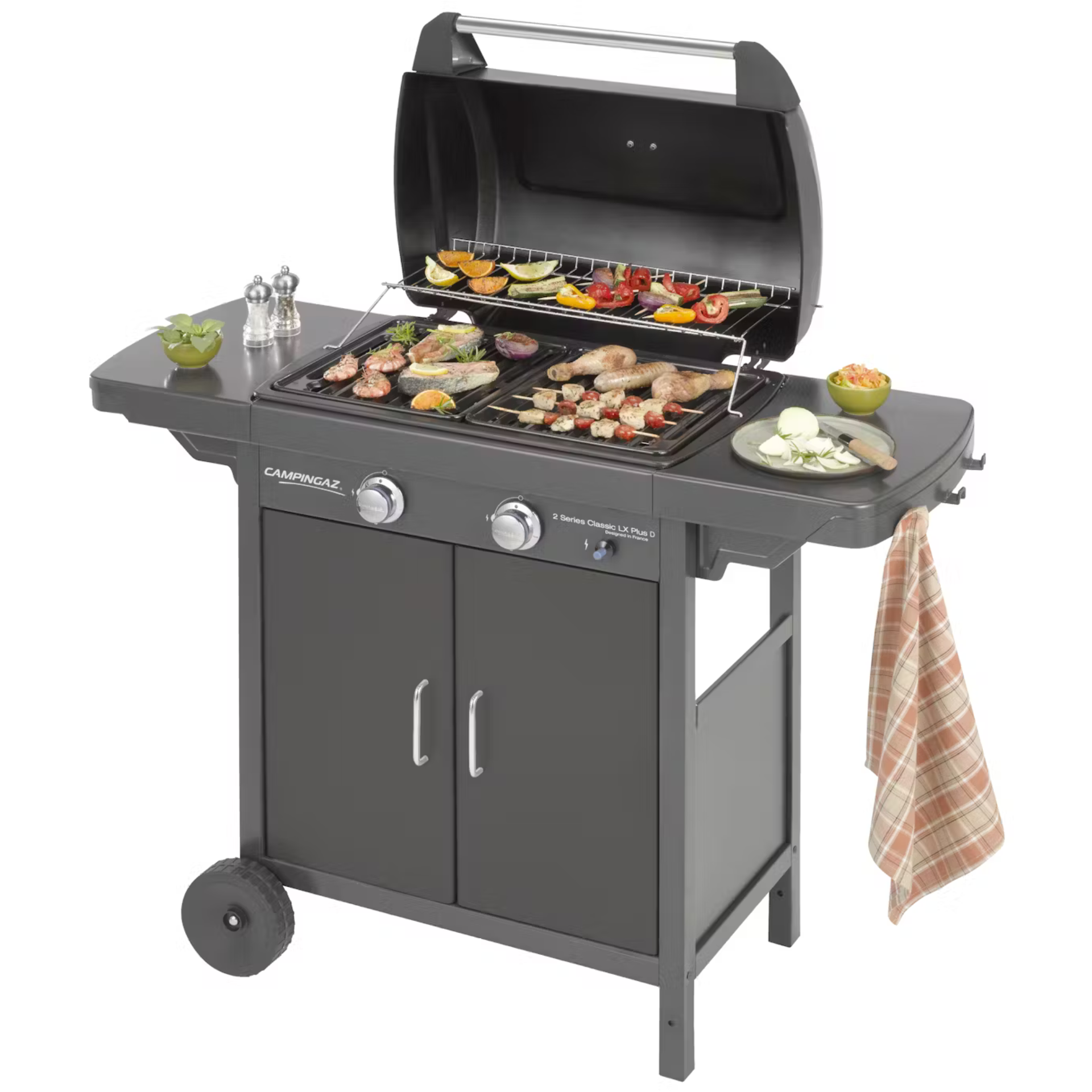 Campingaz 2 Series LX Plus D je ideální volbou pro každého, kdo chce výkonný plynový gril v praktických rozměrech. Díky dvěma výkonným hořákům, skládacím bočním stolkům a velké grilovací ploše umožňuje pohodlné grilování i na menších zahradách či terasách.