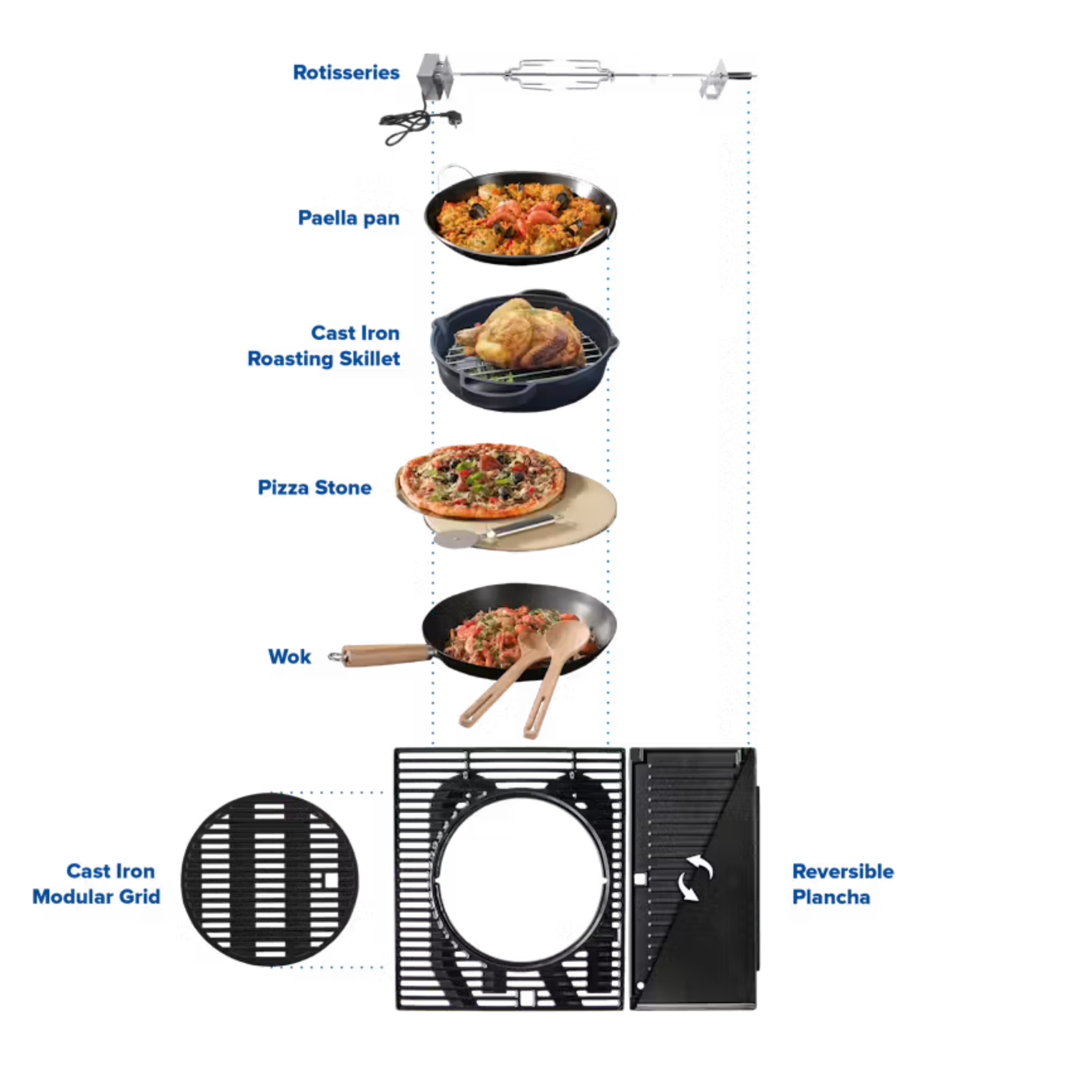 Culinary Modular rošt umožňuje vyměnit střed grilovací plochy za speciální doplňky jako Wok, pizza kámen nebo Paella pánev.
