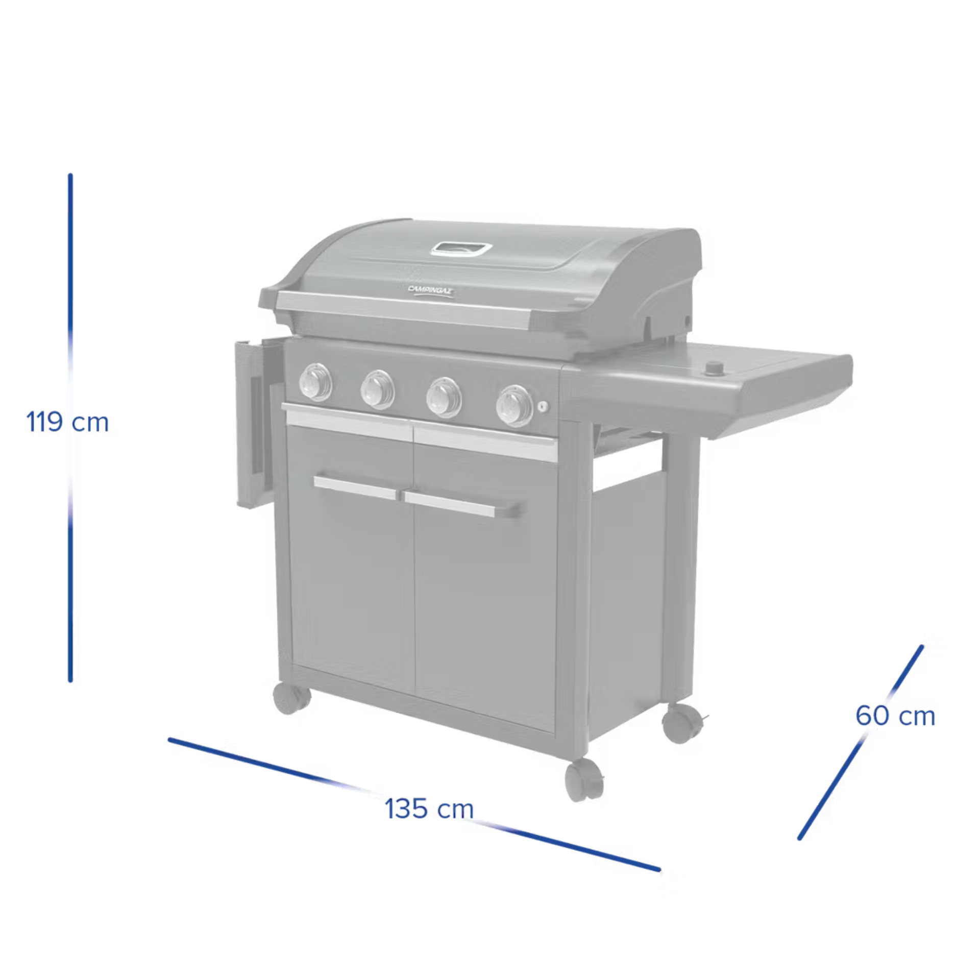 • Rozměry (zavřený gril): 135 × 60 × 119 cm