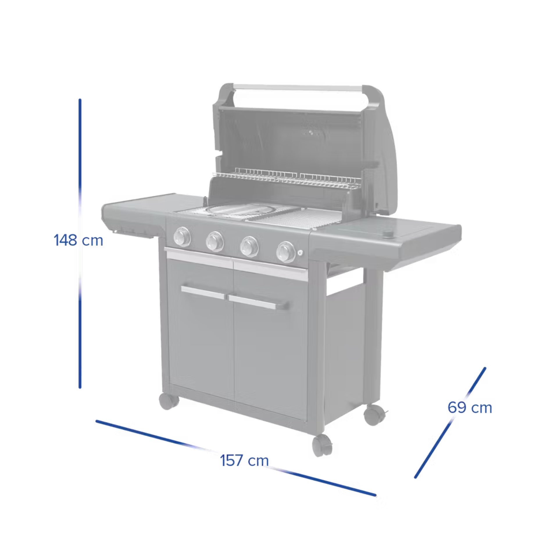 • Rozměry (otevřený gril): 157 × 69 × 148 cm
