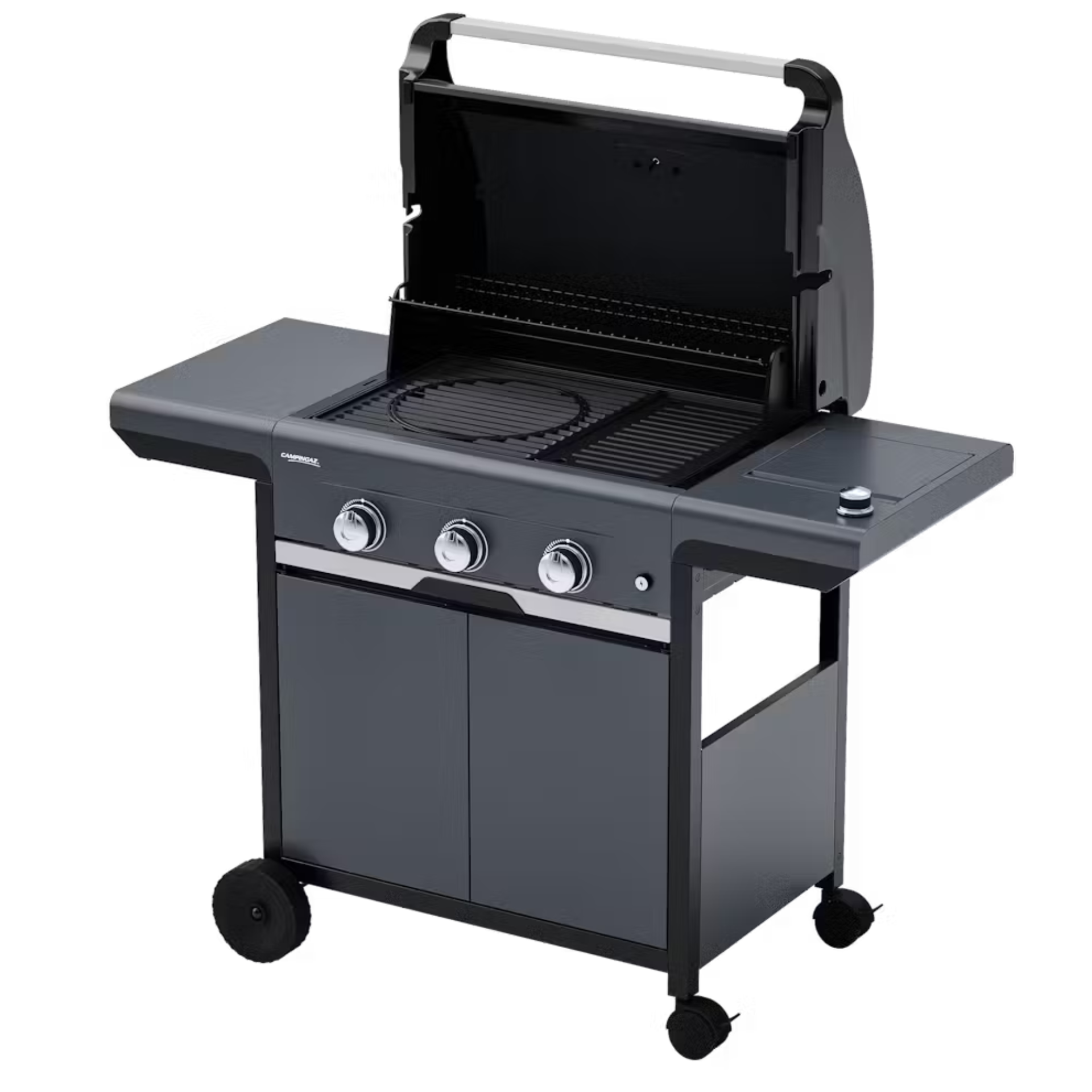 Campingaz Select 3 EXS je ideální pro rodinné grilování, zahradní oslavy a přátelská setkání. Díky bočnímu vařiči a velké grilovací ploše připravíte hlavní chody i přílohy najednou.