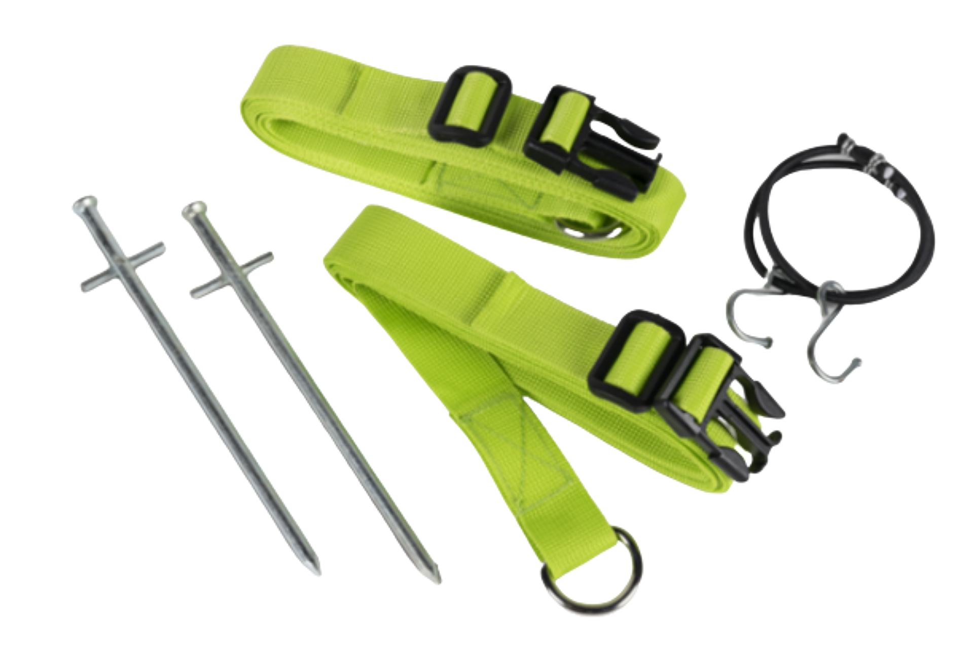 Dometic Storm Tie Down Kit jsoiu silné upínací popruhy, které se ideálně hodí pro použití v silném větru. Dodávají se v párech.
