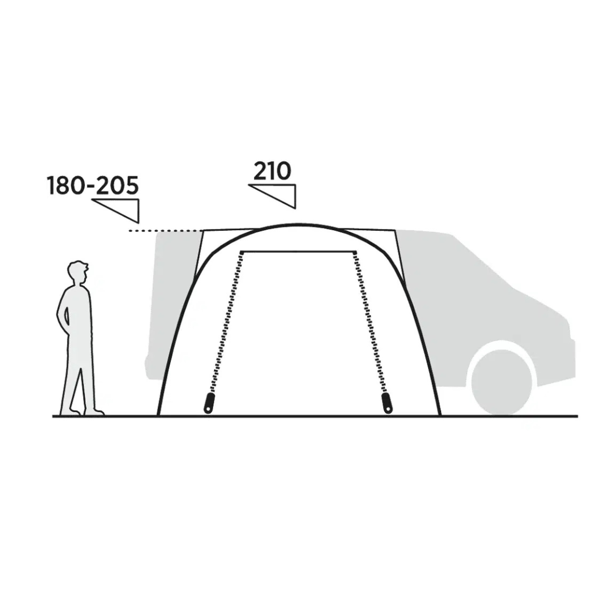 Praktický drive-away přístřešek pro dodávky a MPV s prostorným interiérem, stabilní konstrukcí a možností využití vchodu jako markýzy ideální na cestování a delší kempování.