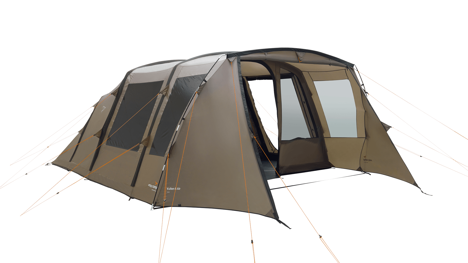Easy Camp Kullen 6 Air je nafukovací rodinný stan pro 6 osob se 3 ložnicemi, velkým obytným prostorem a rychlou stavbou.