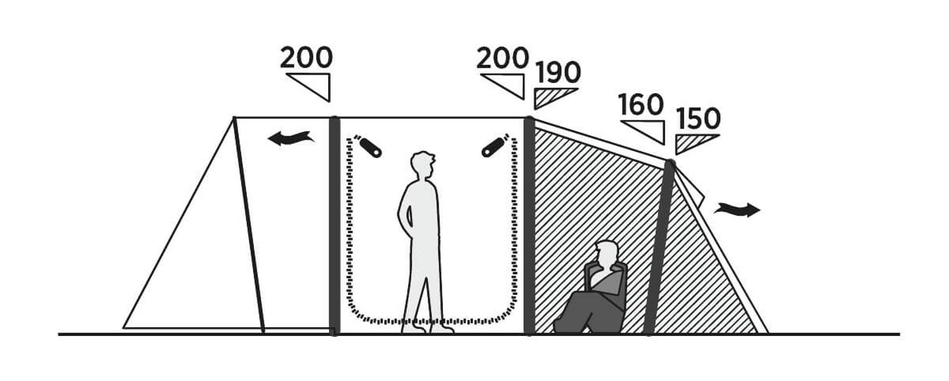 Materiál WeatherGuard 3000 s PU zátěrem poskytuje vodní sloupec 3000 mm, takže vás spolehlivě ochrání před nepříznivým počasím. Pevně všitá podlážka chrání proti vlhkosti, průvanu i hmyzu.