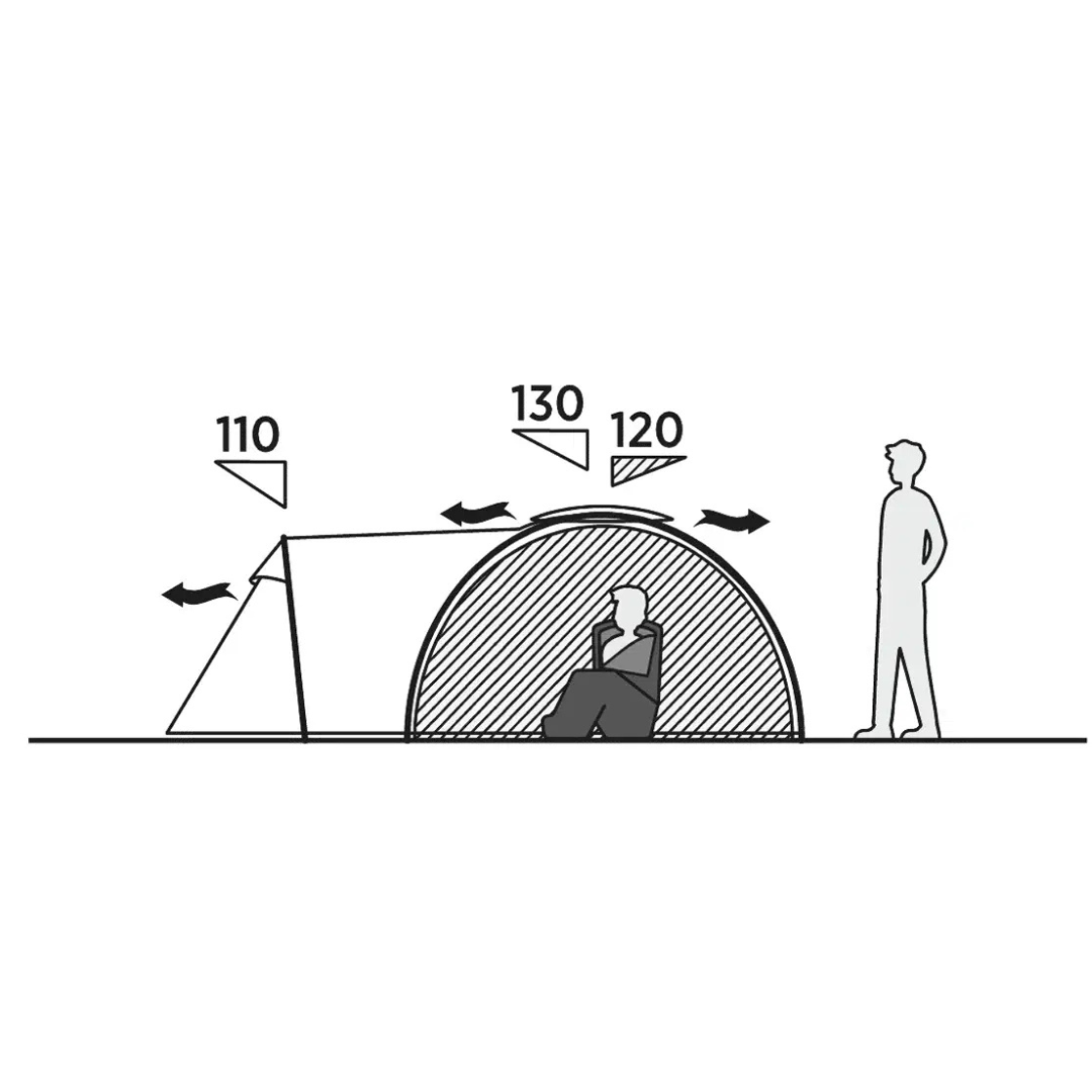 Stan disponuje dvěma vchody, což usnadňuje přístup i lepší ventilaci, a dále větracími otvory v horní části, které zajišťují optimální cirkulaci vzduchu. Ložnice typu SleepTight je vyrobena z tmavšího materiálu a pomáhá blokovat světlo pro lepší spánek i brzy ráno nebo večer.