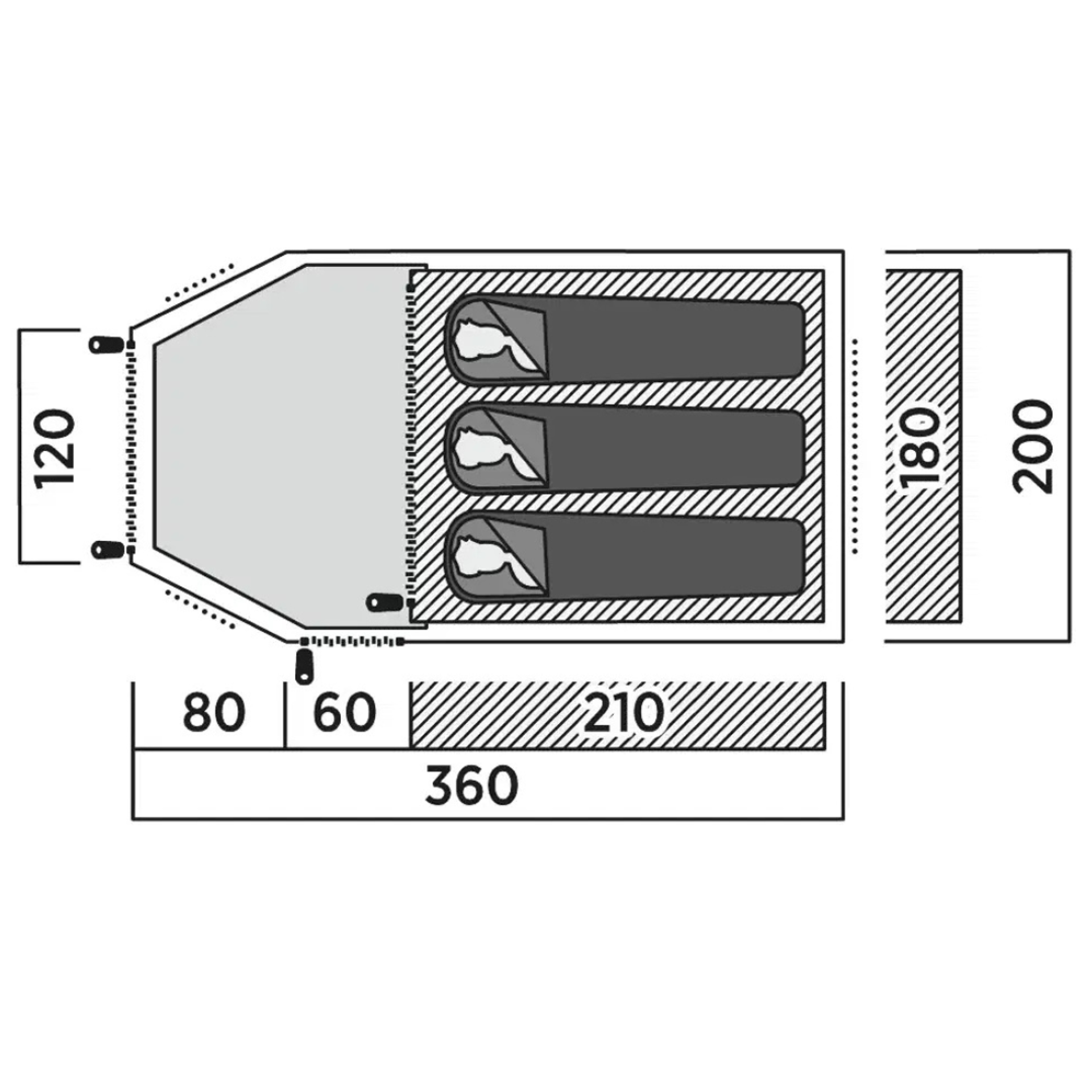 Stan pro 3 osoby s prodlouženou předsíňkou, dvěma vchody a tmavší ložnicí pro pohodlný spánek. Kompaktní a praktické řešení na cesty i víkendové kempování.