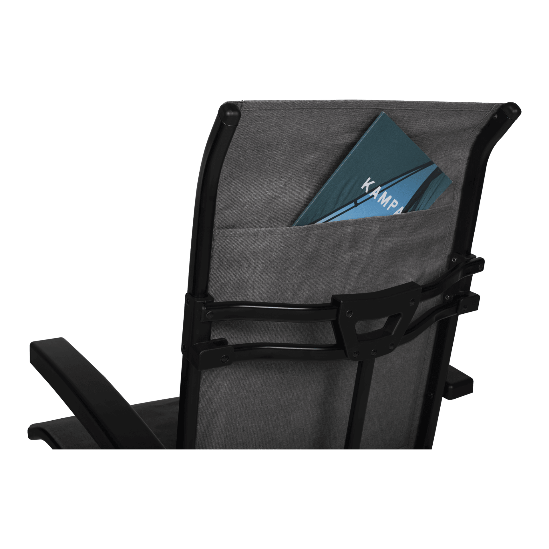 Kampa Meadow Grey je polohovací kempingové křeslo (recliner) navržené pro maximální pohodlí při relaxaci v přírodě. Díky vysokému opěradlu a ergonomickému tvaru poskytuje ideální oporu zad a umožňuje pohodlné sezení i delší odpočinek.