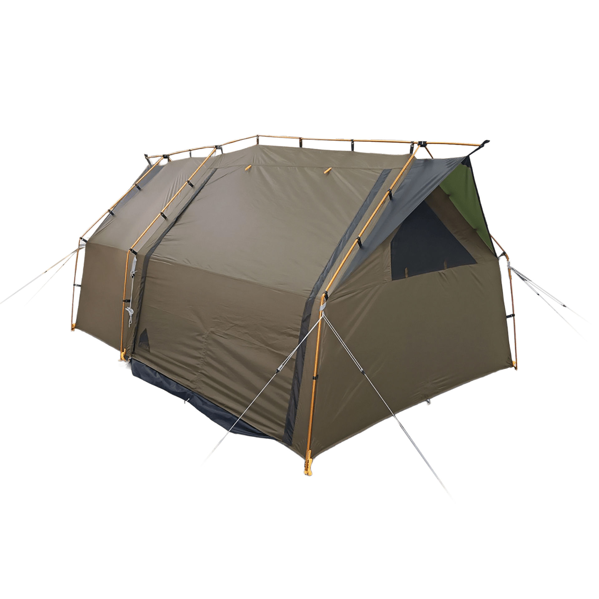 Stan je vybaven dvěma vstupy, velkým předním vstupem a širokým bočním vstupem, což zajišťuje snadný přístup i výbornou ventilaci. Přední přístřešek (canopy) poskytuje krytý prostor pro uložení vybavení nebo relaxaci. Navíc je zde vstup s tyčovou stříškou, která chrání vstup před deštěm i sluncem.