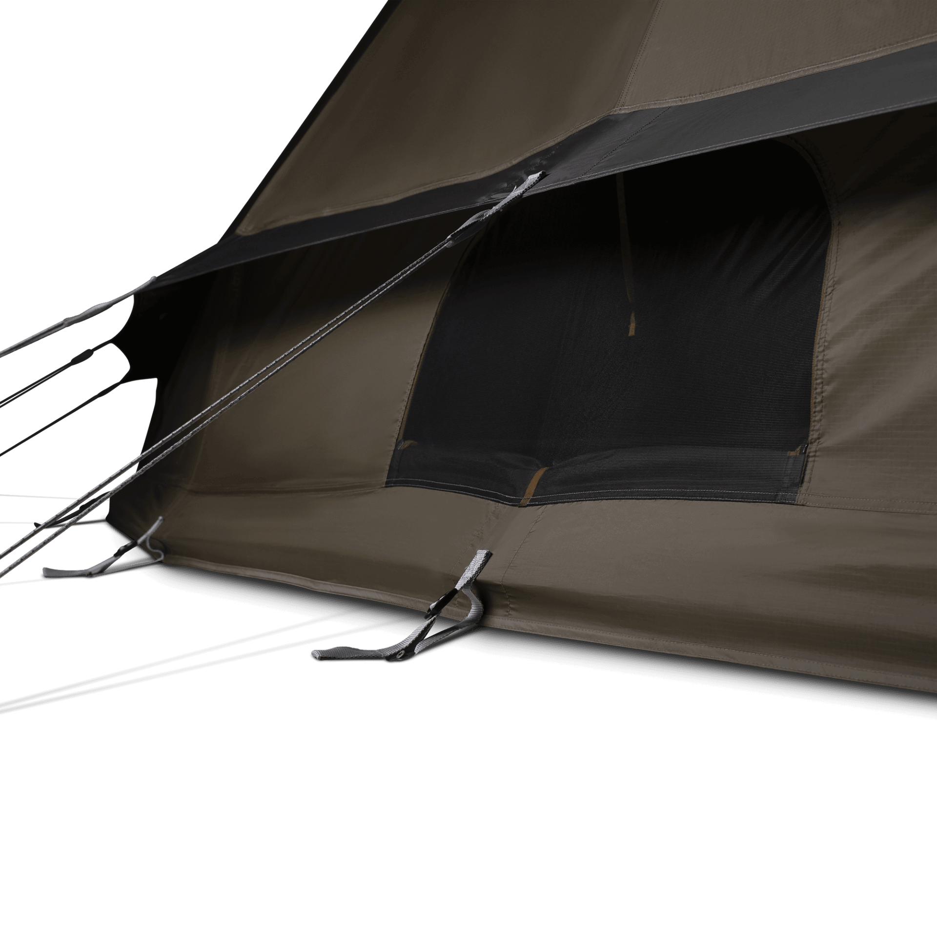 Stan je vybaven velkým vstupem pro snadný přístup a rolovacími bočnicemi (roll-up sides), které umožňují otevřít stan a propojit ho s okolím. Síťované panely (mesh) ve vstupu zajišťují ventilaci a zároveň chrání proti hmyzu. Ventilační otvory pomáhají regulovat proudění vzduchu a omezují kondenzaci.