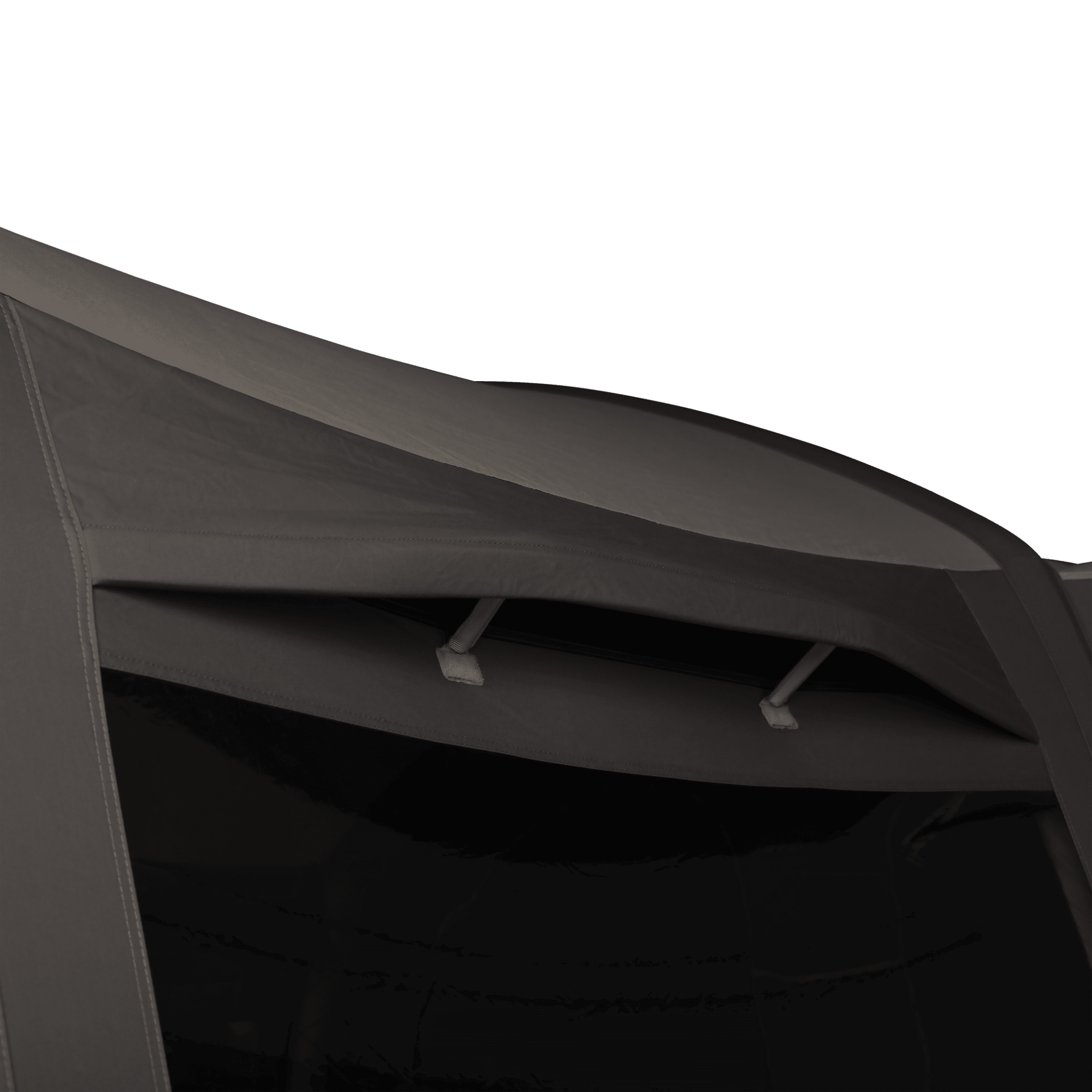 Velký integrovaný přístřešek nabízí ideální místo pro vaření, odpočinek nebo uložení vybavení. Přední panel obsahuje velká PVC okna a síťovanou část pro lepší světlo a ventilaci a lze jej kompletně otevřít nebo odepnout. Boční vstup s vlastním přístřeškem zajišťuje pohodlný přístup i za deště.