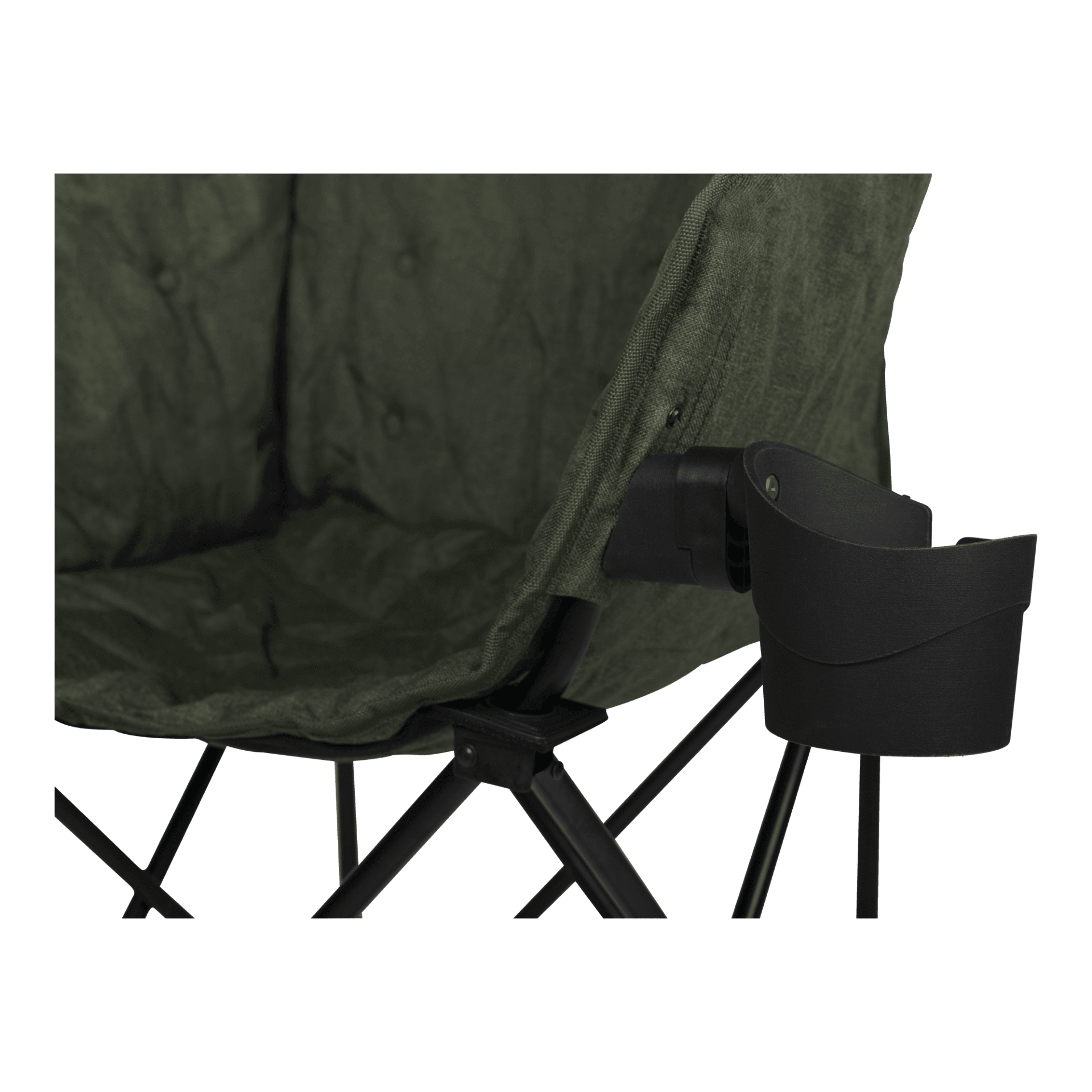 Velkou předností je silně polstrovaný sedák, který zvyšuje komfort i při delším sezení. Součástí je také odnímatelný držák na nápoje, který přidává na praktičnosti při odpočinku.