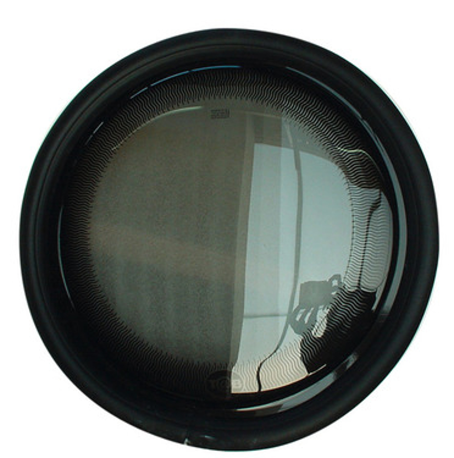 Karbestové okno kulaté s dvojitým zasklením a tónovaným šedým sklem. Součástí dodávky je pryžový profil a zatahovací potrubí pro pryžový profil.