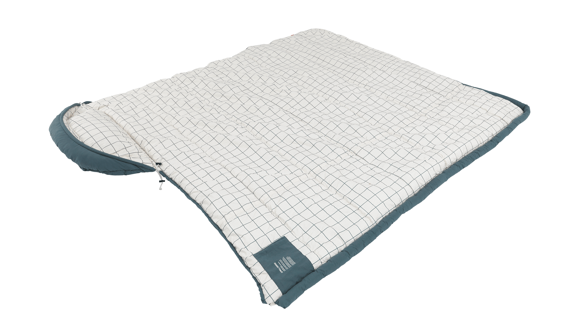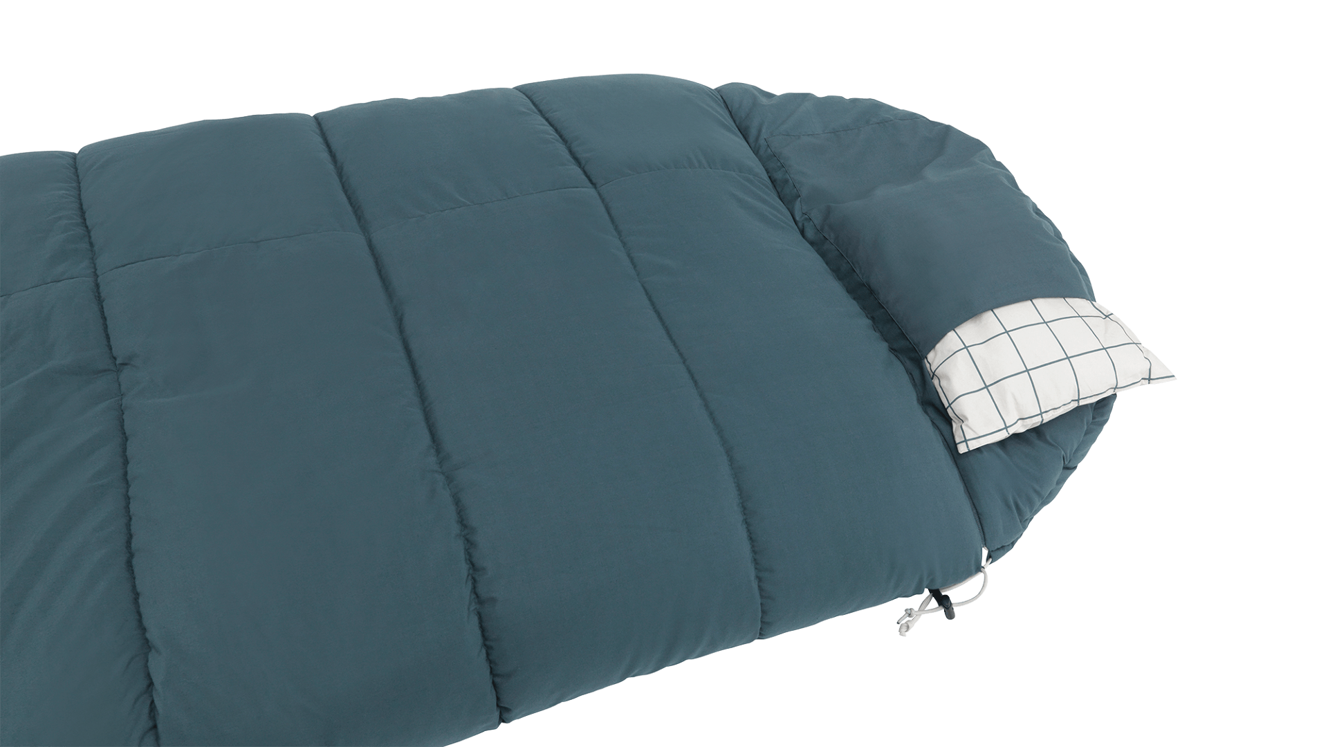 Spacák Outwell Camper Supreme Blue nabízí vysoký tepelný komfort až do -3 °C, bavlněnou podšívku, odnímatelný polštář a možnost rozložení na deku.