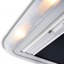 Okno De luxe má navíc oproti Heki 2 nový vnitřní rám s osvětlením 4 žárovkami a novou roletu VD Stoff, barva rámu krémová - bílá.