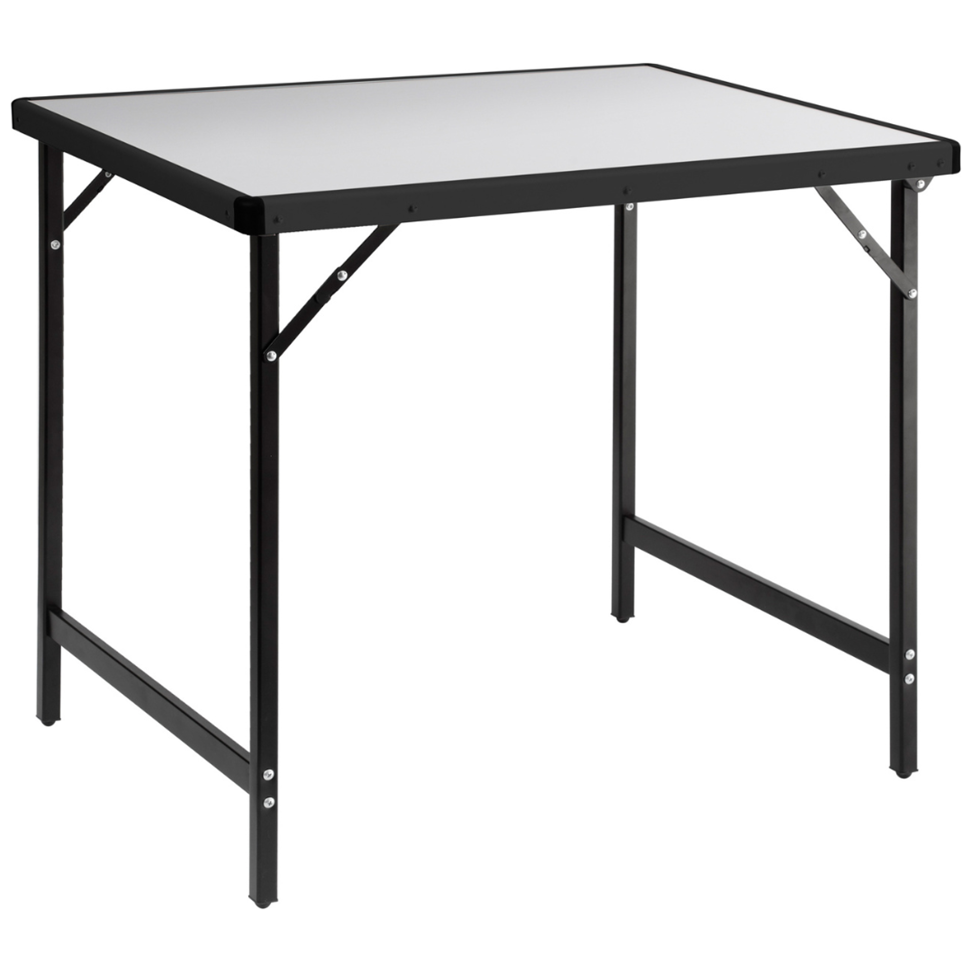 Stolová deska o rozměrech 80 x 60 cm je vyrobena z kvalitního hliníku, který je odolný vůči vlhkosti, UV záření i teplu. Ocelové skládací nohy jsou lakované, což zvyšuje jejich odolnost vůči korozi a zajišťuje potřebnou stabilitu při použití.