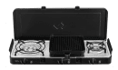 CADAC 3 Cook Turbo FFD Deluxe je luxusní tříhořákový vařič ideální pro přípravu různorodých pokrmů na dovolené. Obsahuje plochou i žebrovanou grilovací desku, stojany na hrnce a ochranné bočnice proti větru. Grilovací desky mají odnímatelnou rukojeť a jsou pokryty keramickou GreenGrill vrstvou, která umožňuje zdravější vaření s minimem tuku.