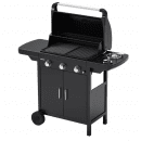 Výkonný plynový gril s třemi hořáky, kompaktními rozměry a systémem InstaClean Aqua pro snadnou údržbu. Ideální pro menší terasy a zahrady.