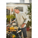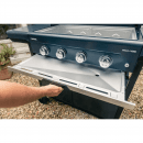 Gril je vybaven také bočním vařičem (2,3 kW), který umožňuje přípravu příloh nebo omáček. Druhý boční stolek je sklopný, což usnadňuje manipulaci a skladování.