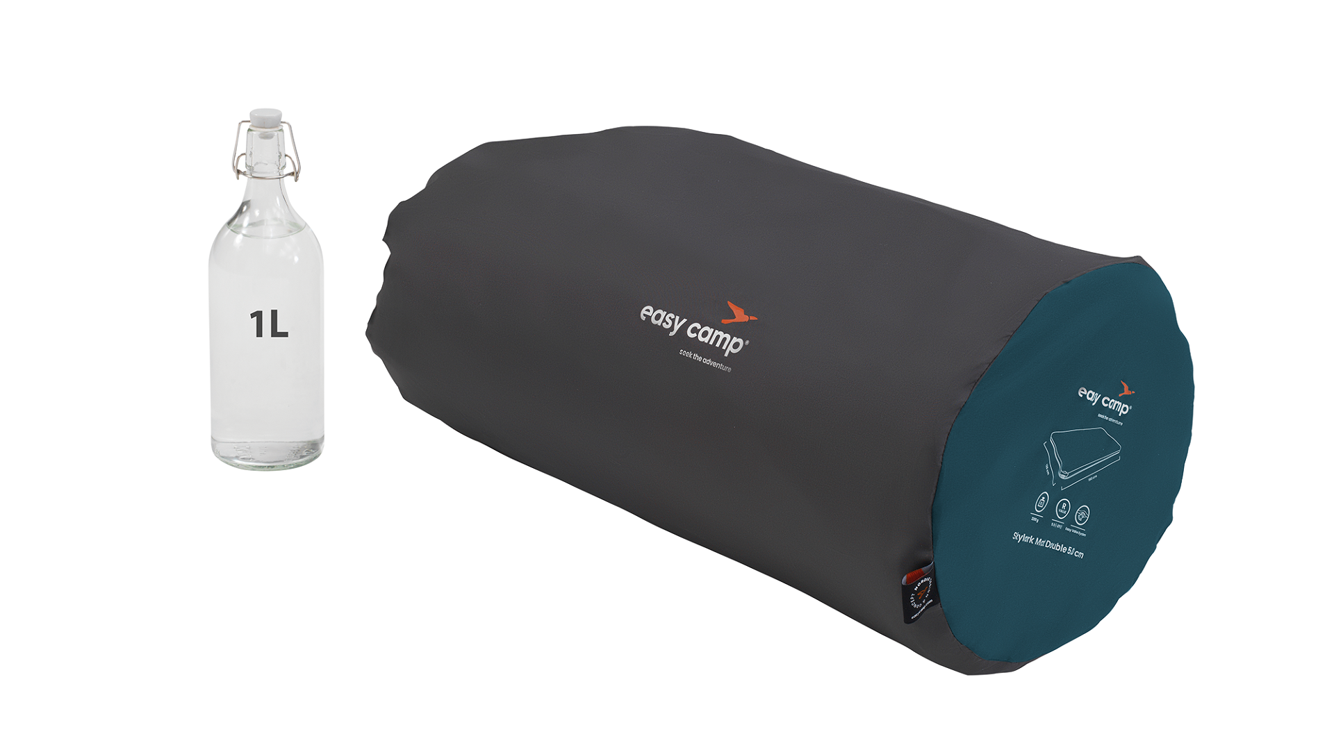 Samonafukovací matrace Easy Camp Skylark Mat Double 5.0 cm s tichým povrchem z polyesteru a systémem Easy Valve pro snadné nafouknutí a vyfouknutí.