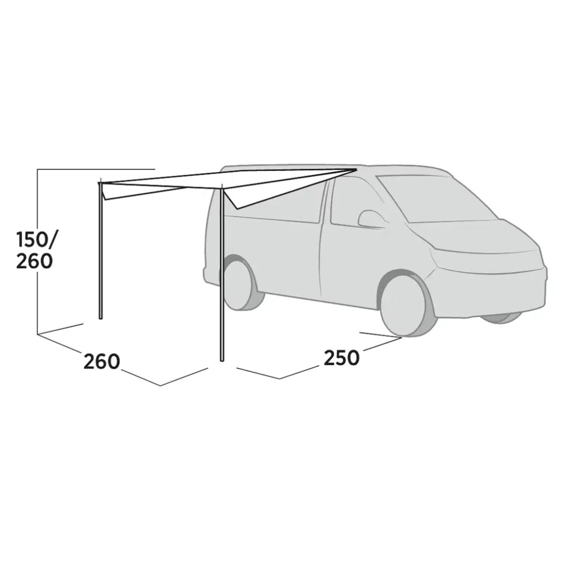 Praktický přístřešek s vodním sloupcem 3000 mm, který snadno upevníte ke karavanu, autu. Skvělý pro stín a pohodlí během dne.
