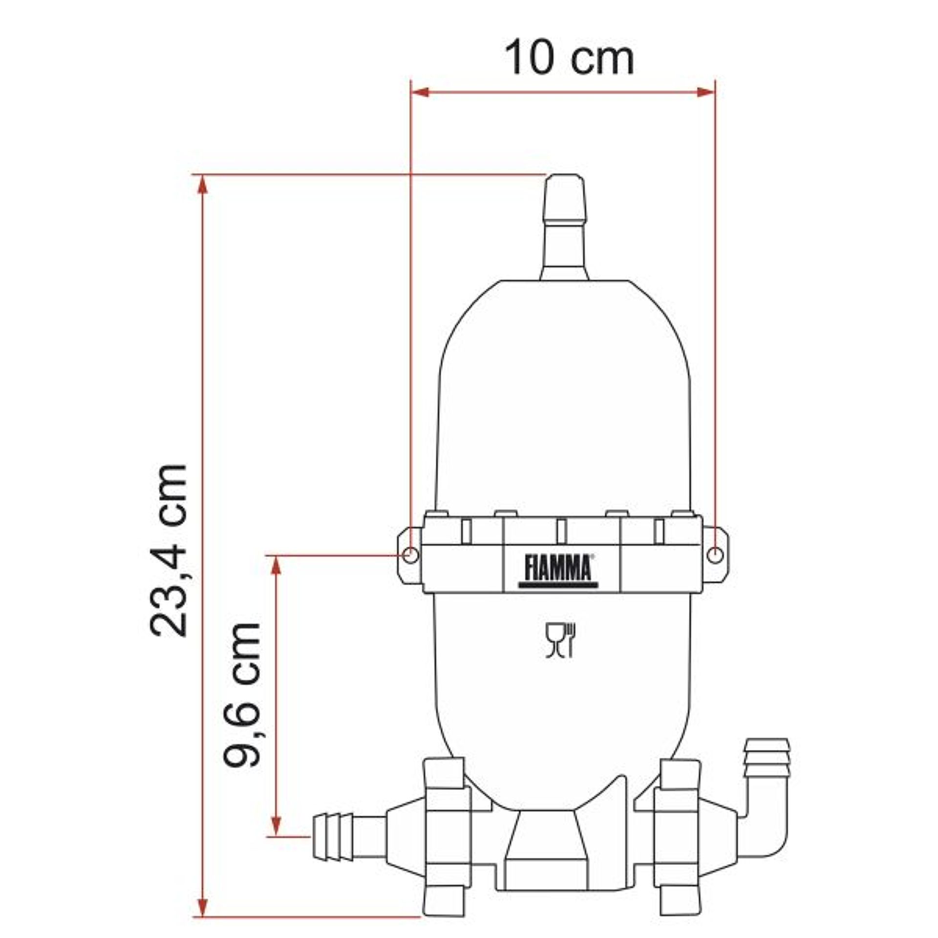 Expanzní nádrž Fiamma A 20, ideální doplněk ke všem tlakovým vodním čerpadlům. Zabraňuje nepravidelnému průtoku vody a zbytečnému zapínání a vypínání cyklu čerpadla. Přepadová nádrž, která je vhodná pro provoz, umožňuje stálý průtok vody i při napůl zavřeném kohoutku.
