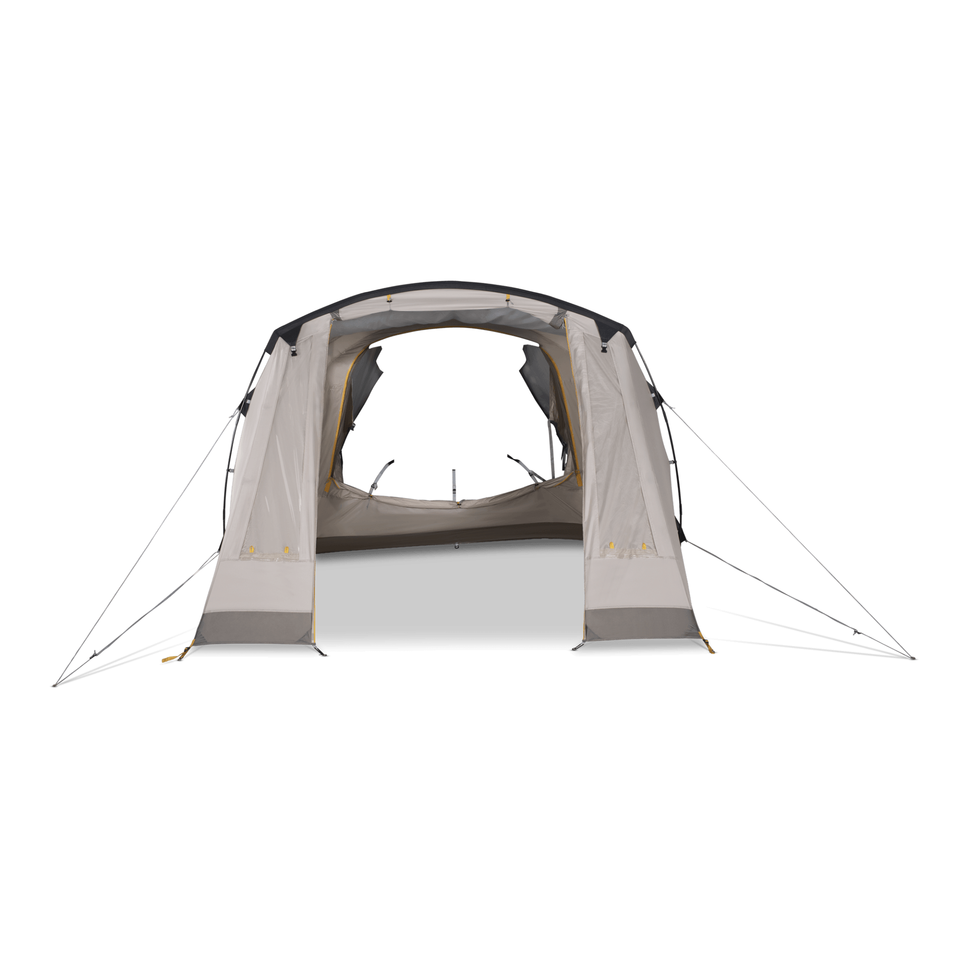 Kampa Tailnest nabízí vstupy na třech stranách, což zajišťuje pohodlný přístup a velmi dobrou ventilaci. Okna lze také vyklopit a použít jako dveře nebo stříšku, případně je možné s použitím volitelných tyčí vytvořit dodatečný přístřešek proti slunci nebo dešti.