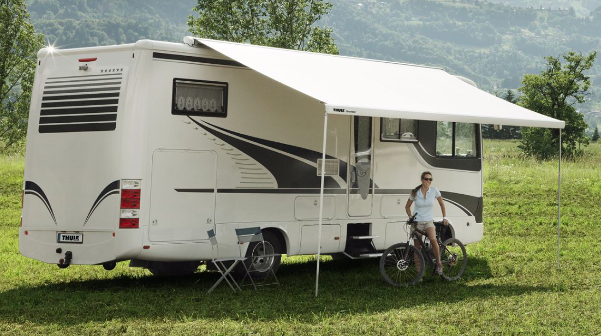 Střešní markýza Thule Omnistore 9200 navržená speciálně pro velká vozidla s individuálně nastavitelným sklonem výsuvu. Barva krytu - bílá, barva tkaniny - šedá.
