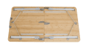 Outwell Custer L je skládací kempingový stůl s bambusovou deskou a teleskopickými nohami, výškově nastavitelný a ideální pro venkovní použití.
