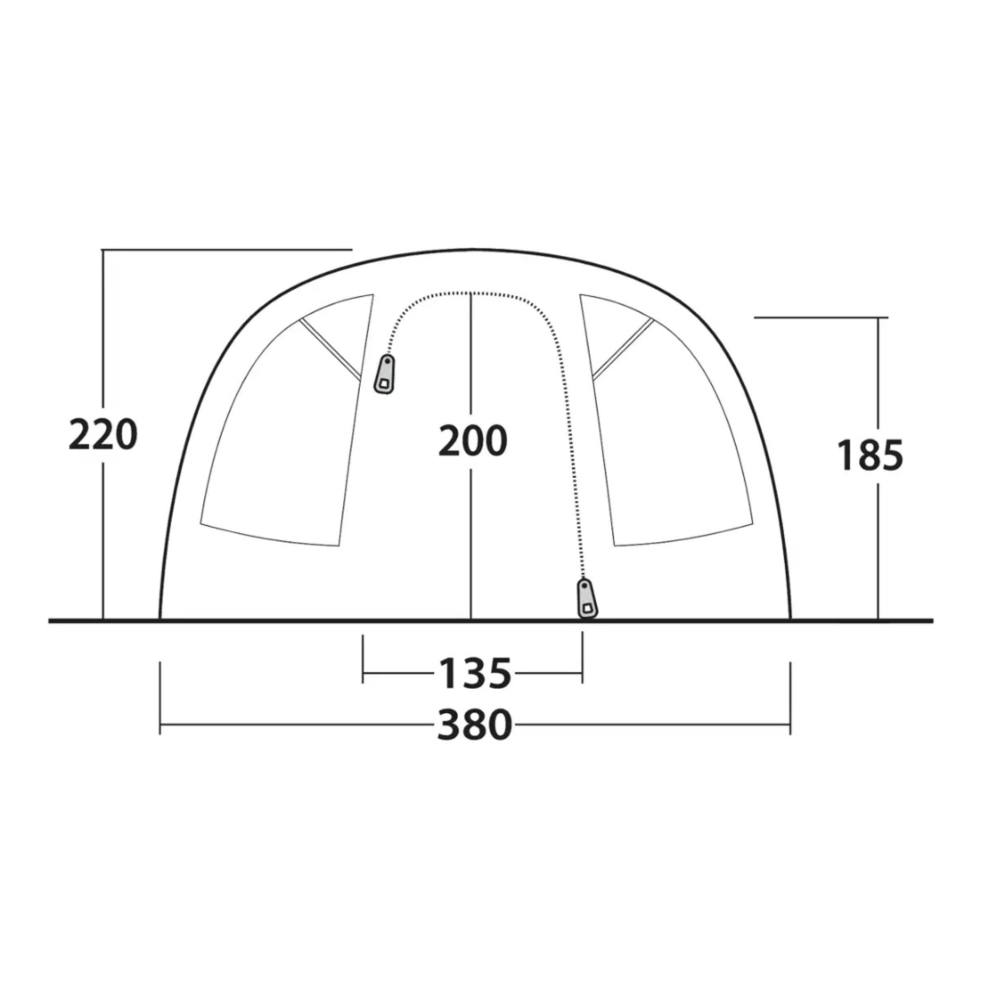 Výška stanu 220/210 cm (v nejvyšším bodě)