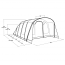 Obývací prostor je prostorný, světlý a vybaven velkými zatmavenými okny s možností zakrytí závěsy, což zajišťuje soukromí a příjemnou atmosféru. Vstupní dveře se otevírají svisle a chrání je markýza s možností ohrnutí boků, která poskytuje flexibilní využití a ochranu proti dešti. Druhý boční vchod s moskytiérou umožňuje výborné větrání a pohodlný přístup.