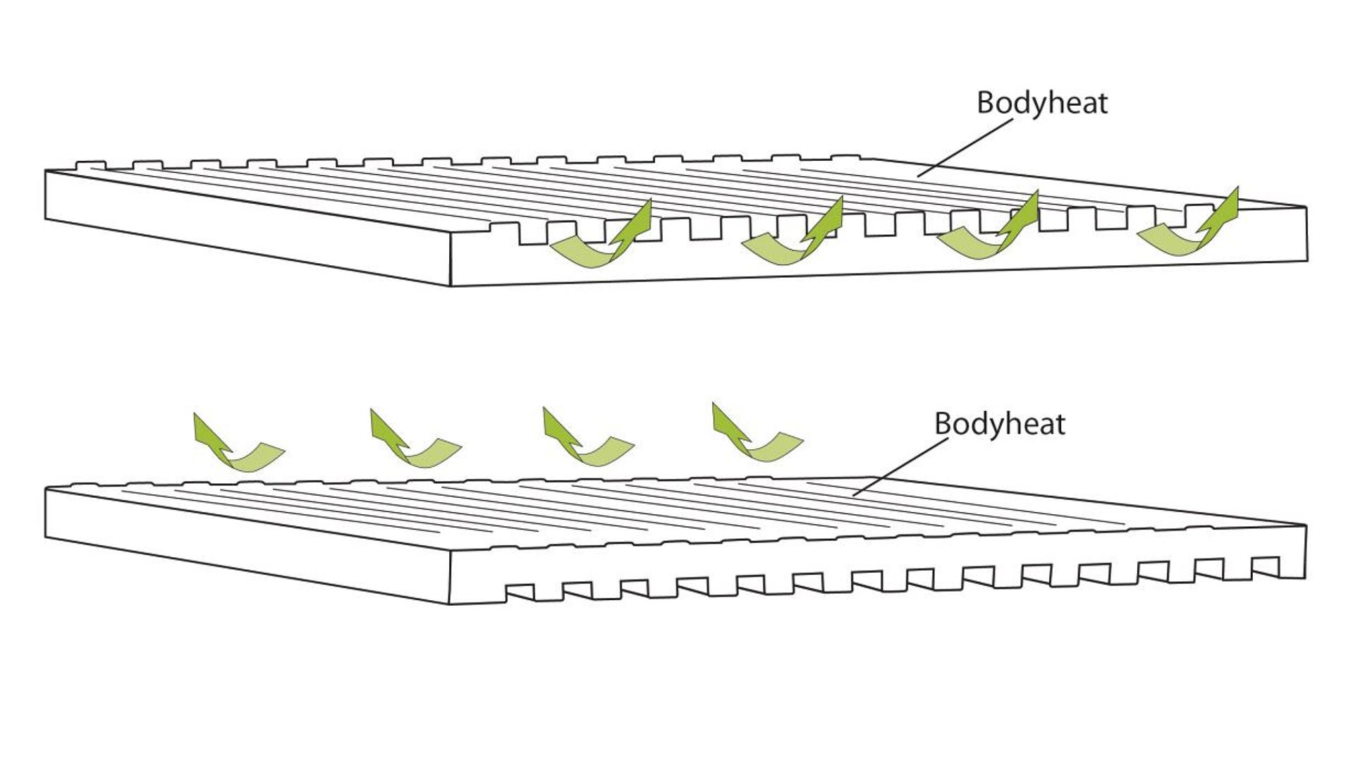 Jedinečná pěnová výplň s výřezy nejenže zvyšuje pohodlí při ležení, ale také přispívá k lehkosti celé matrace, což ocení každý milovník outdoorových aktivit. Další významnou inovací je úprava bočních stěn, která zabraňuje ohýbání karimatky pod tlakem a zároveň usnadňuje její nafukování.