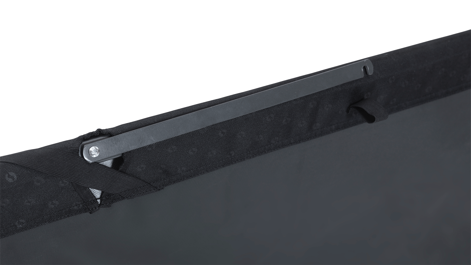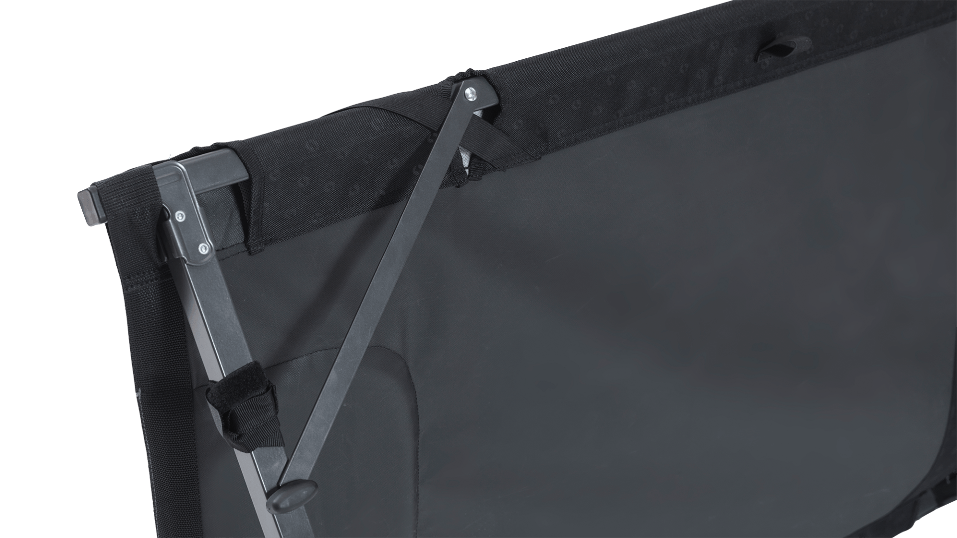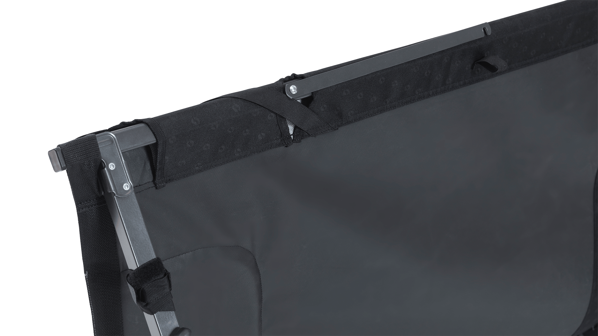 Lehátko je vybaveno polstrovaným polštářem s měkkou síťovinou (mesh), který zajišťuje příjemný kontakt a pohodlí při ležení. Praktické jsou také elastické rohové popruhy, které umožňují pevné uchycení karimatky, takže zůstane na svém místě po celou noc.