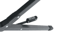 Konstrukce z odolné oceli s práškovou úpravou zajišťuje vysokou pevnost a stabilitu. Lehátko má nosnost až 125 kg a je vybaveno lock funkcí, která zabraňuje samovolnému složení během používání. Zajišťovací prvky dále zvyšují celkovou stabilitu.