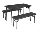 Skládací piknikový set kombinuje stůl a dvě lavice v jednom. Díky lehké a odolné konstrukci s voděodolným povrchem je ideální pro rodinné výlety a kempování.