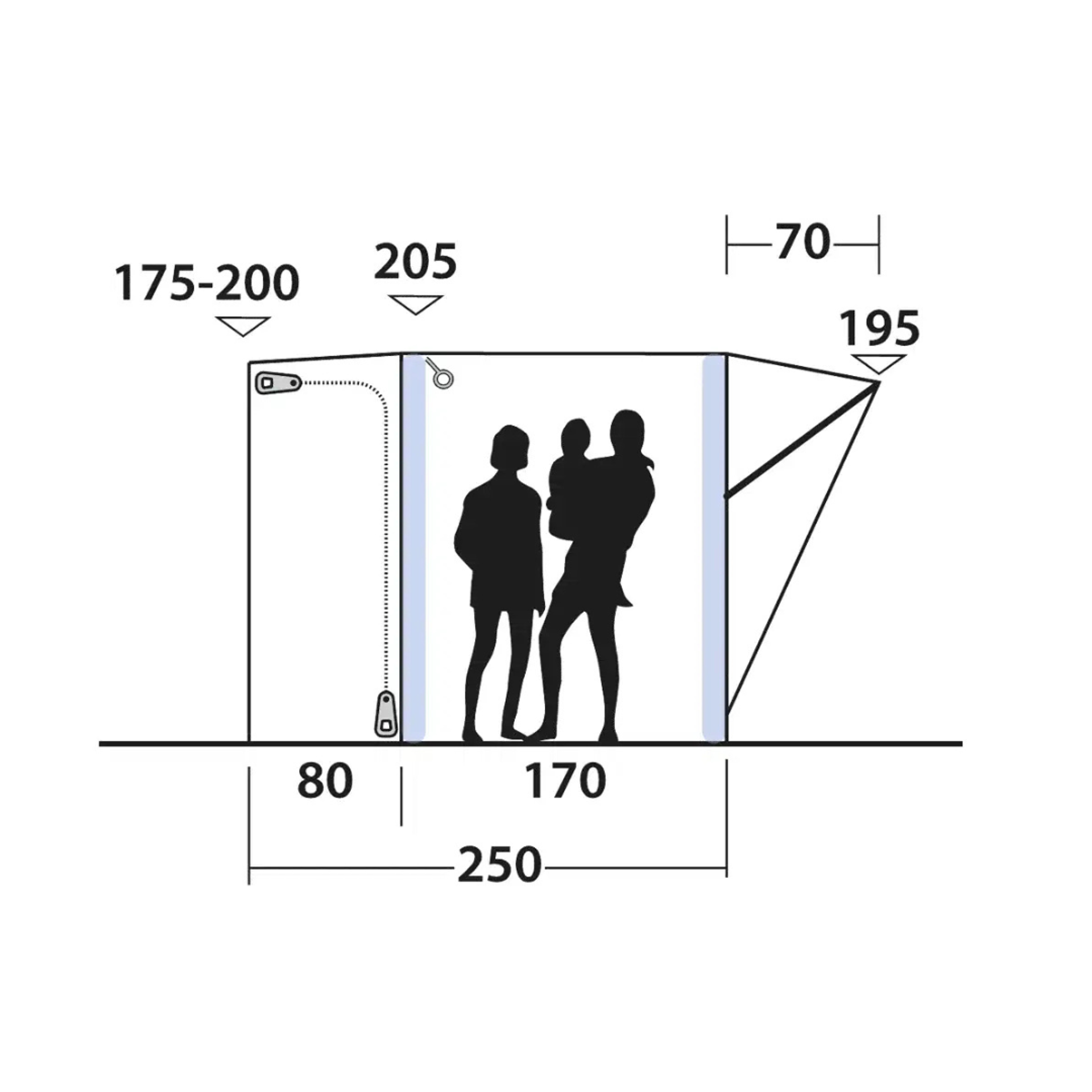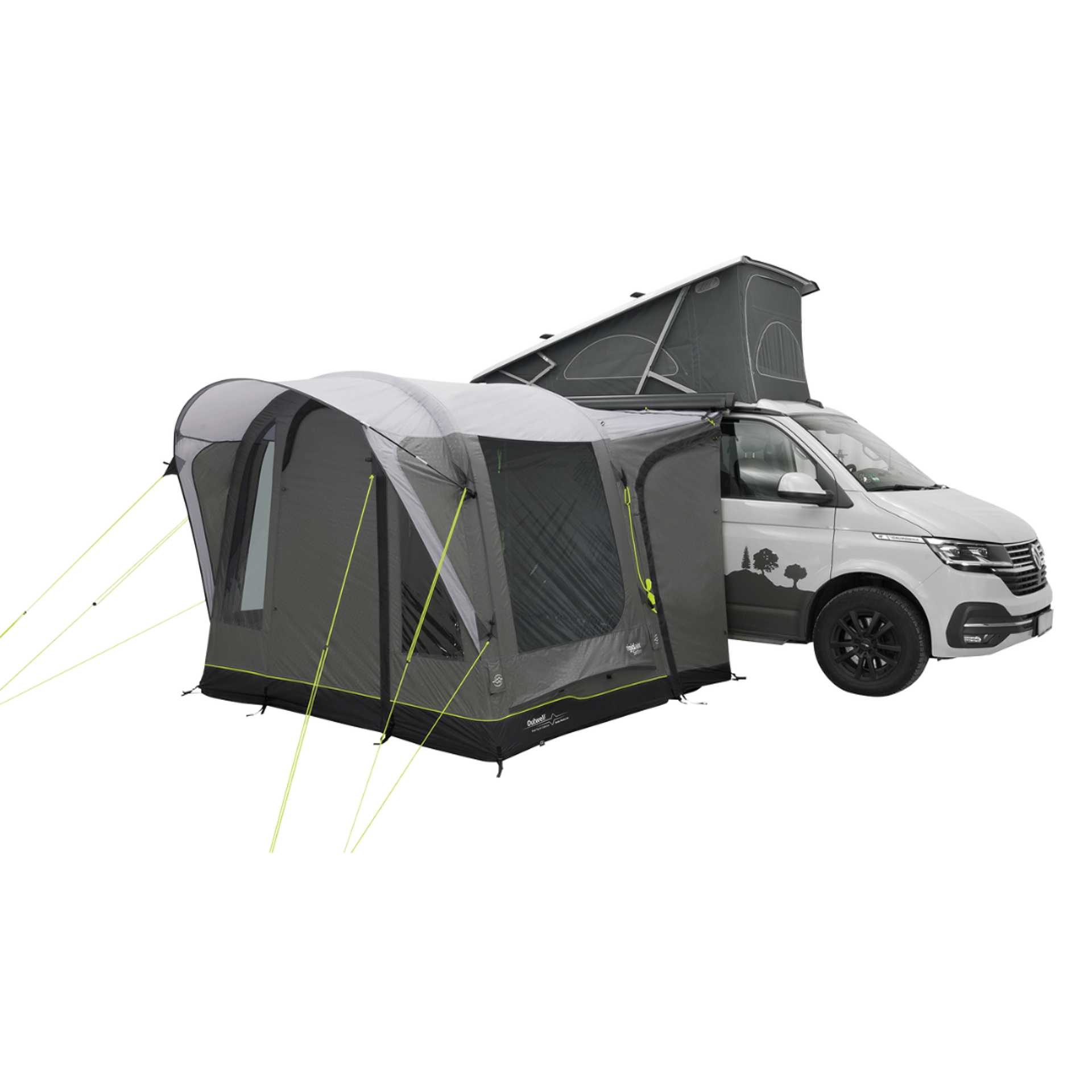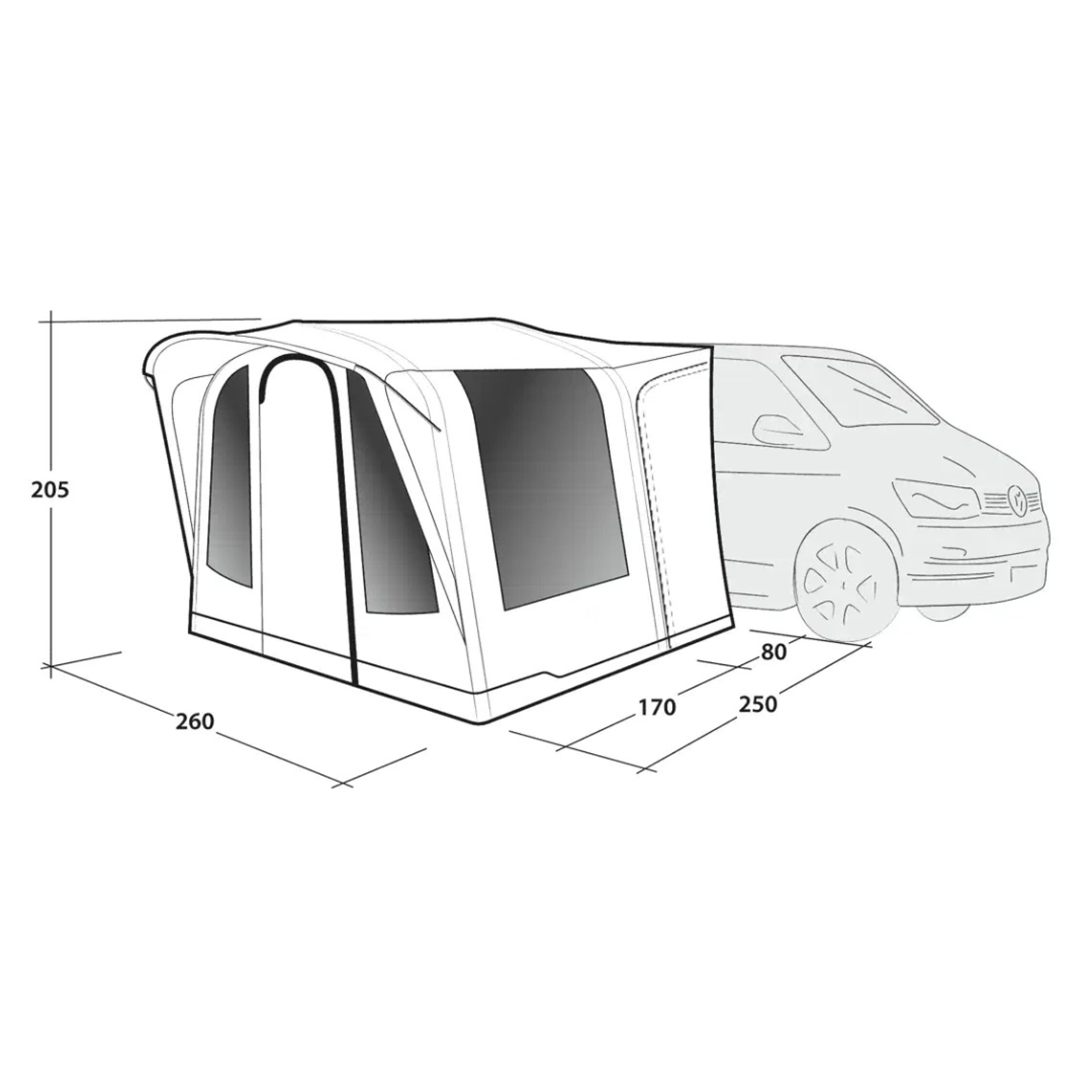 Outwell Santa Monica Air je kompaktní a nafukovací přístřešek (drive-away awning) navržený pro páry, menší rodiny, sólo cestovatele nebo přátele. Díky svým rozměrům a snadné manipulaci se skvěle hodí pro dodávky a menší obytná vozidla. Přináší přídavný obytný prostor, který lze doplnit i o přístavnou ložnici.