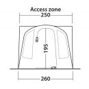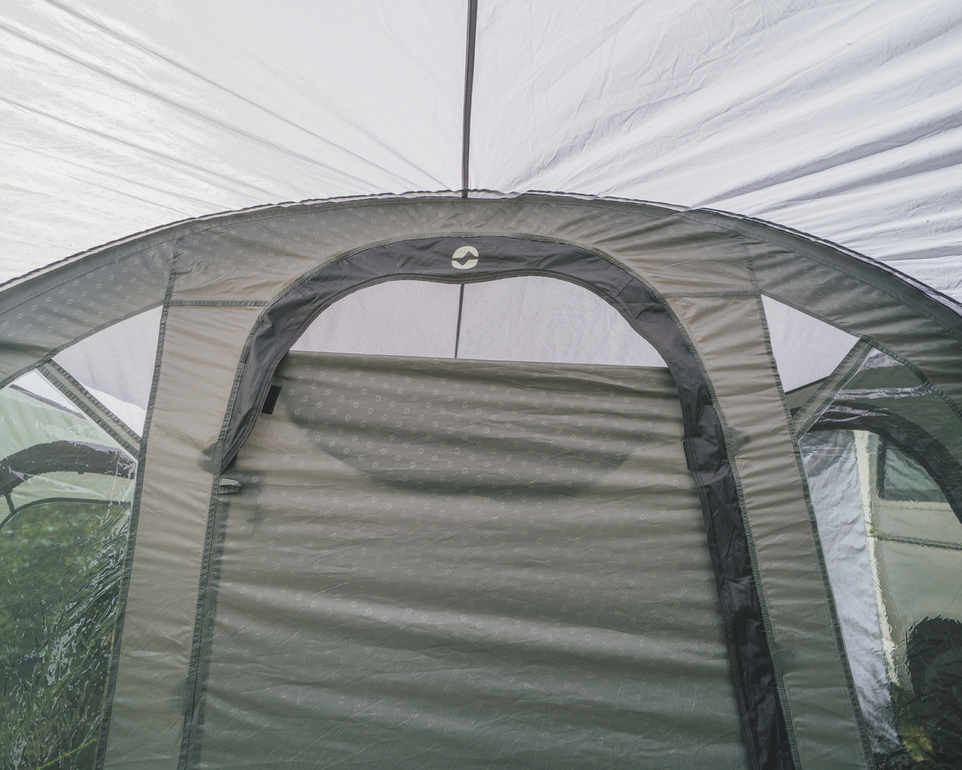Díky nafukovací konstrukci Rigid Air System je stavba jednoduchá a rychlá. Obytný prostor je dobře větraný a světlý, s velkými tónovanými okny, která chrání před sluncem i pohledy zvenčí. Přední stěna s J-dveřmi a markýzou nabízí pohodlný vstup, zatímco větrací síťka za dveřmi umožňuje proudění vzduchu bez hmyzu.