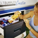 Kompresorový, chladící šuplík/box pro využití dutých prostor v karavanu, lodi, nebo nákladních aut. Výhodou je, že kompresorový agregát lze odejmout a umístit až 1,5 m od boxu. Coolmatic á hermeticky uzavřený kompresor Danfoss BD35F s integrovanou řídící jednotkou, ochranou baterie proti vybití a přepólování. Autolednička je vybavena mechanickým termostatem. Vnitřní prostor je ucelený, šuplík je opatřen pojezdovými kolečky a je celý výsuvný. Do lednice lze umístit lahve naležato. Autolednička je uzpůsobena pro přeložení kompresorové jednotky, dle potřeby a typu vozidla, na pravou či levou stranu.