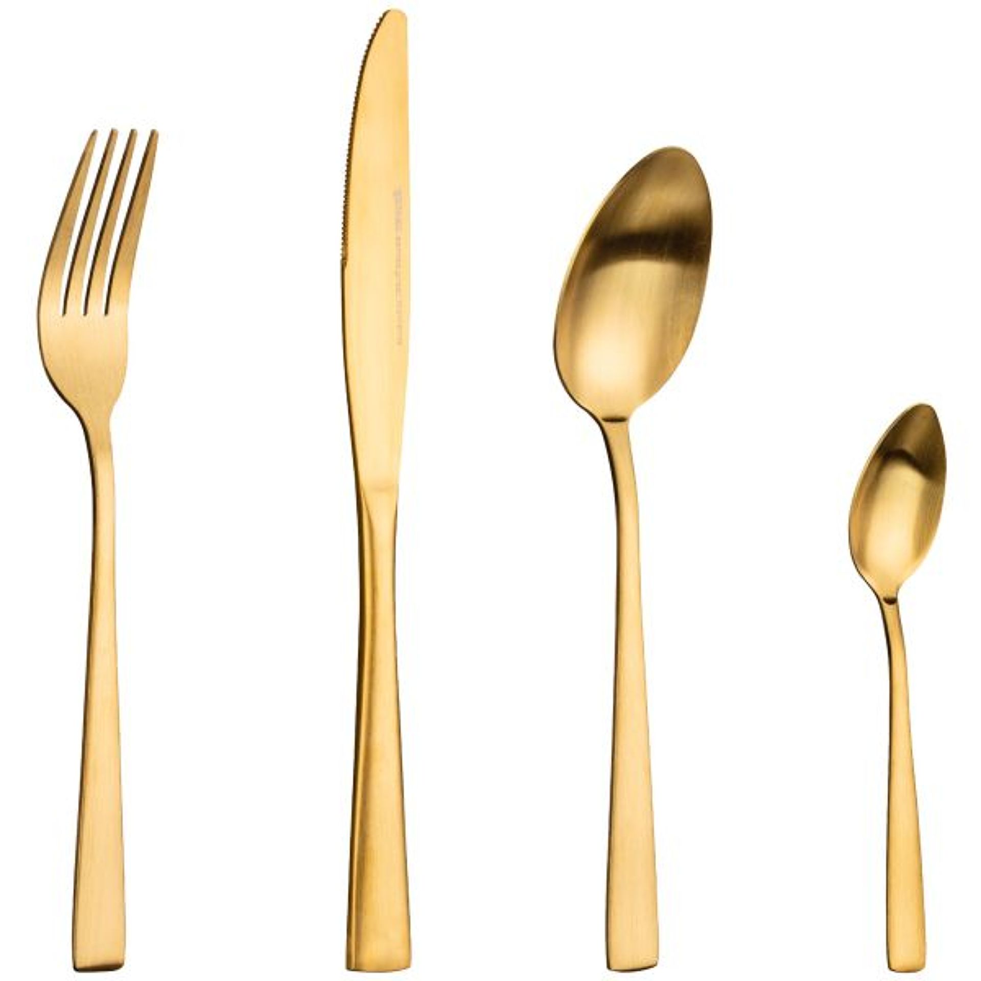 Příbory mají elegantní zlatý povrch, který dodává stolování luxusní vzhled. Jsou odolné, příjemné na dotek a vyvážené, což zajišťuje pohodlné používání. Sada obsahuje kompletní příbory pro čtyři osoby, tedy vidličky, nože, lžíce a čajové lžičky.