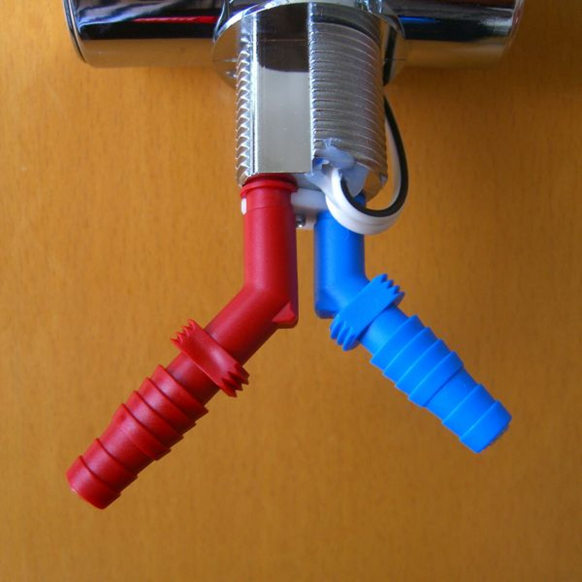 Směšovací kohoutek London na teplou a studenou vodu s vestavnou výškou pod 40 mmm. Montážní otvor 27 mm, závitová délka 29 mm, pro hadici 8 - 10 mm, mat/chrom
