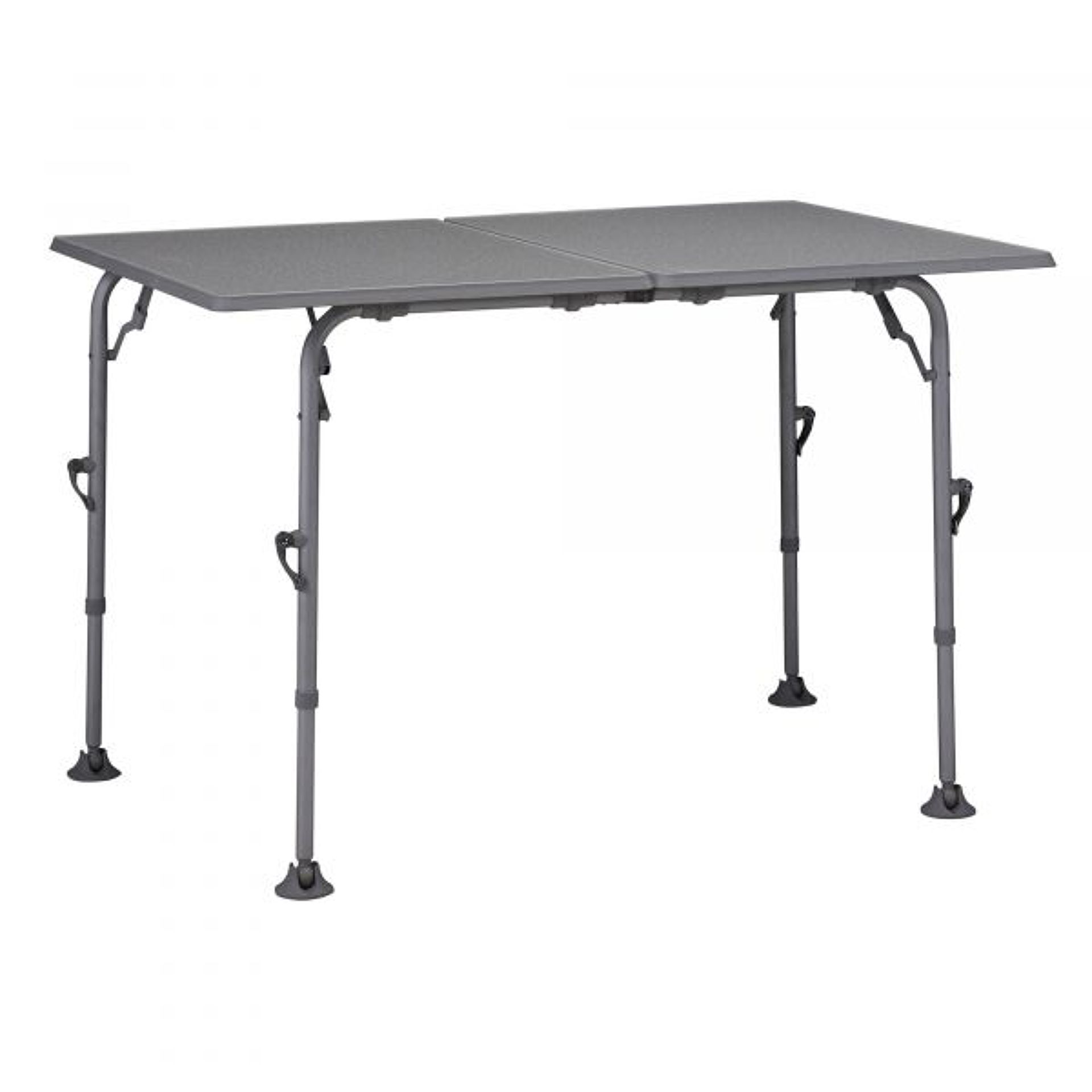 je velmi stabílní stolek s jednoduše nastavitelnými, hliníkovými nohami, vrchní deska je odolná proti povětrnostním podmínkám. Taška pro převoz a přenos je součástí balení.