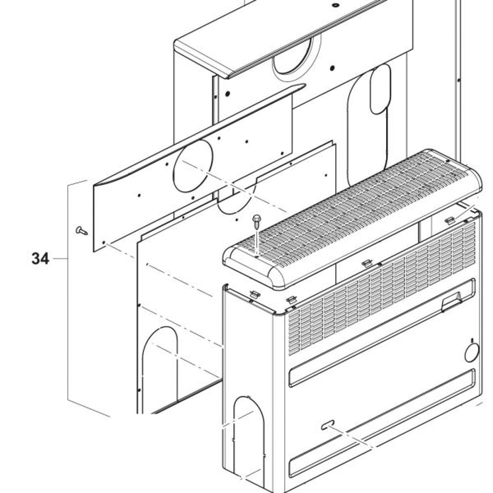 Zadní stěna RWS s ochranným plechem a vývodem pro napojení komínu zleva, nebo zprava.