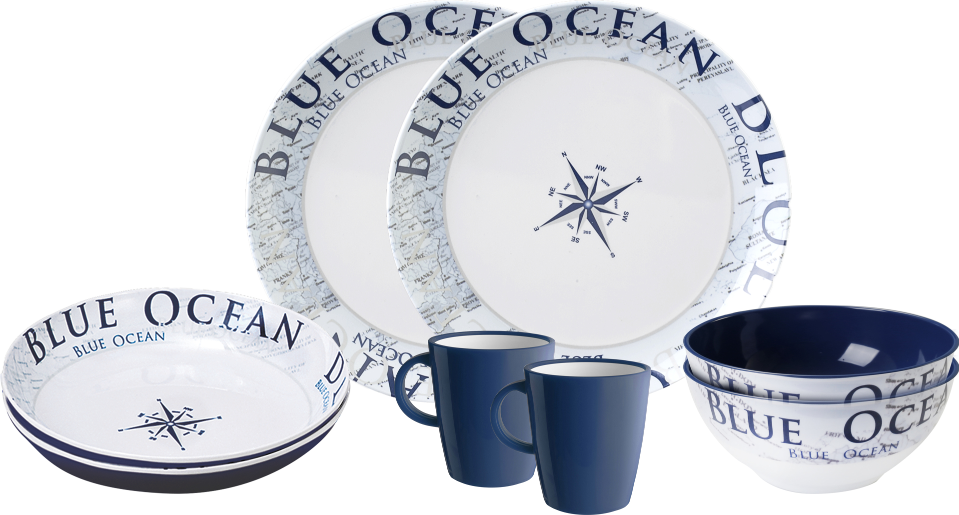 Brunner Blue Ocean Tete-a-tete je 8dílná sada nádobí pro 2 osoby z melaminu a Resylinu, která nabízí protiskluzové provedení, vysokou odolnost.