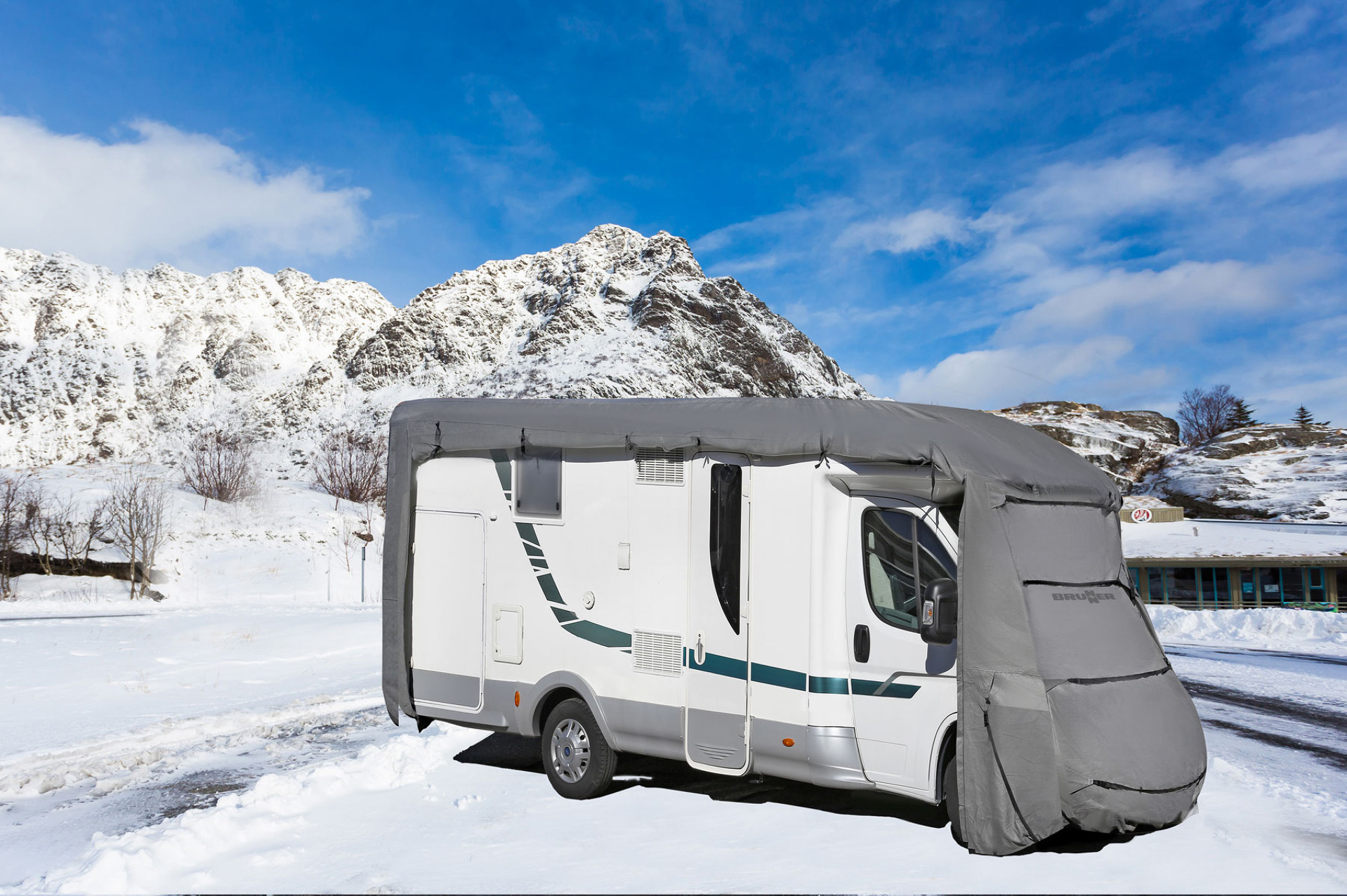 Zimní ochranný kryt Brunner SI 6M pro polointegrované vozy 700-750 cm. 4vrstvá TNT textilie, prodyšná, vodoodpudivá a UV stabilní. Rozměry: 750 × 240 × 250 cm