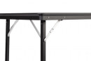 Stabilní práškově lakovaná hliníková konstrukce je doplněna o výškově nastavitelné nohy, které lze plynule regulovat podle typu terénu. To oceníte například na nerovném podloží v kempu nebo na pláži. Díky chytře řešenému skládacímu mechanismu lze stůl složit napůl a uložit do plochého tvaru o velikosti 74 × 70 × 10,5 cm, což umožňuje snadné skladování i v menších úložných prostorech karavanů, dodávek nebo kufrů aut.