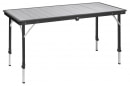 Odolný skládací stůl pro 6 osob s hliníkovou lamelovou deskou a výškově nastavitelnými nohami ideální pro karavany a venkovní použití.