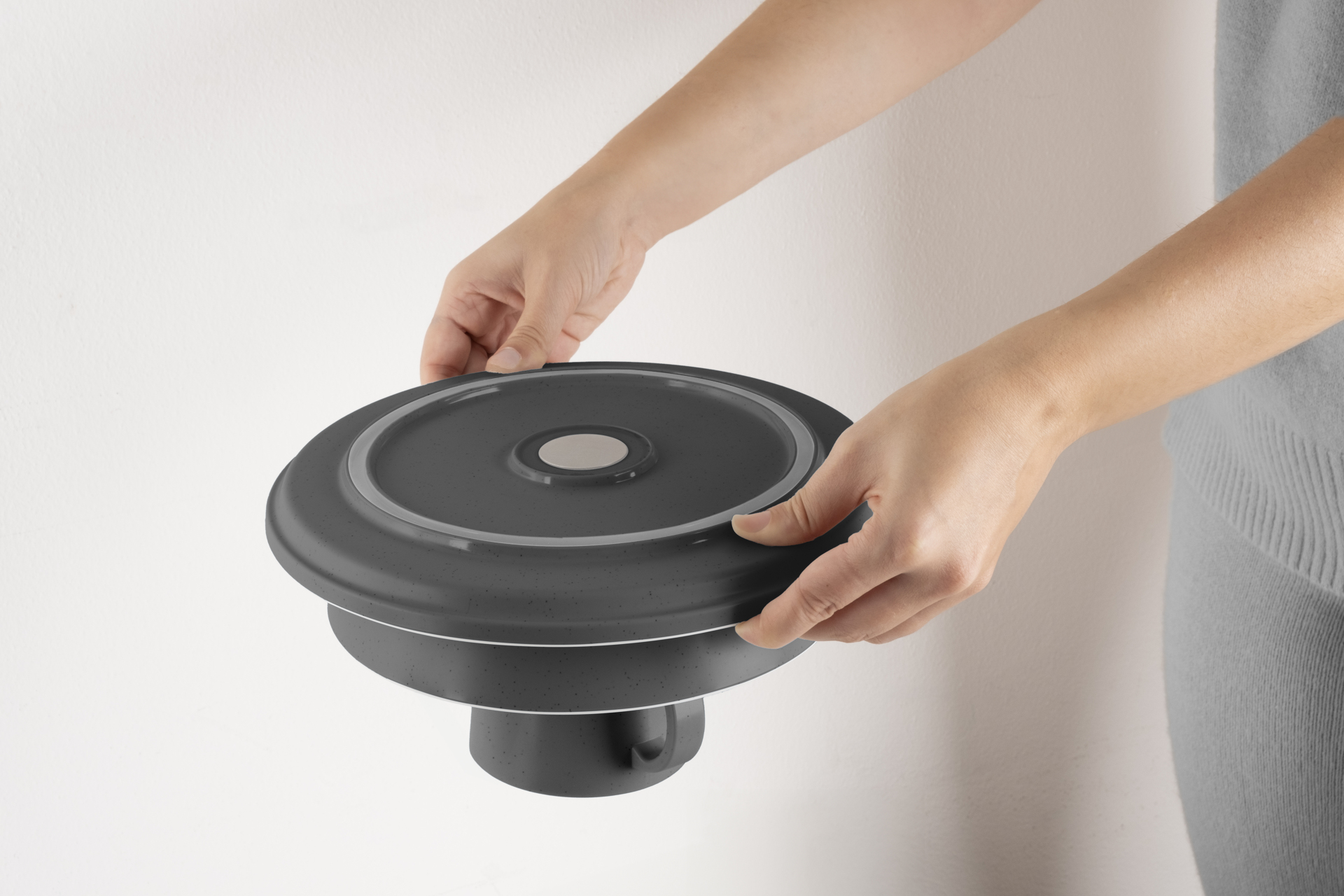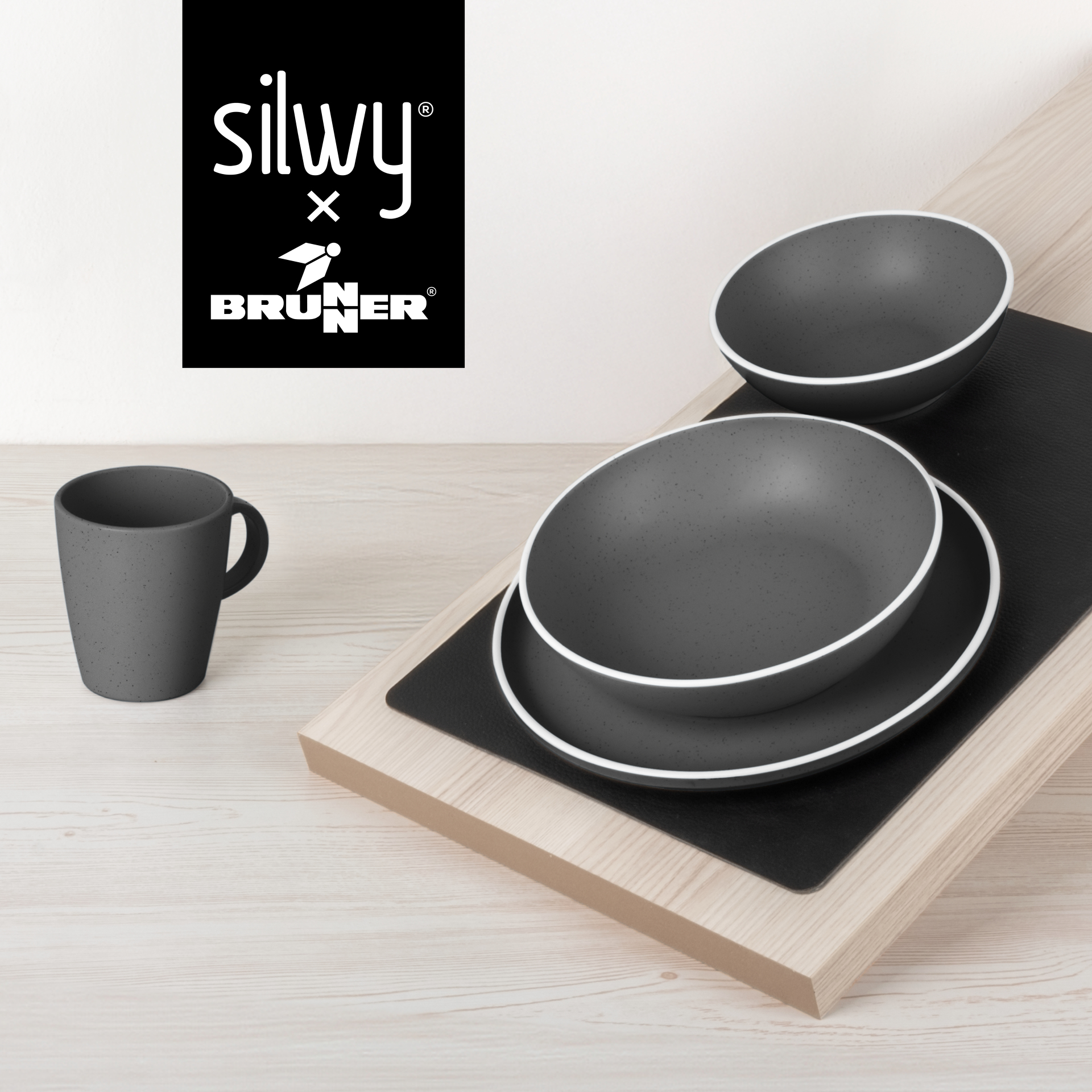 Brunner Dolomit Magnetic Grey je sada nádobí z melaminu se zabudovaným magnetickým systémem a protiskluzovou úpravou.
