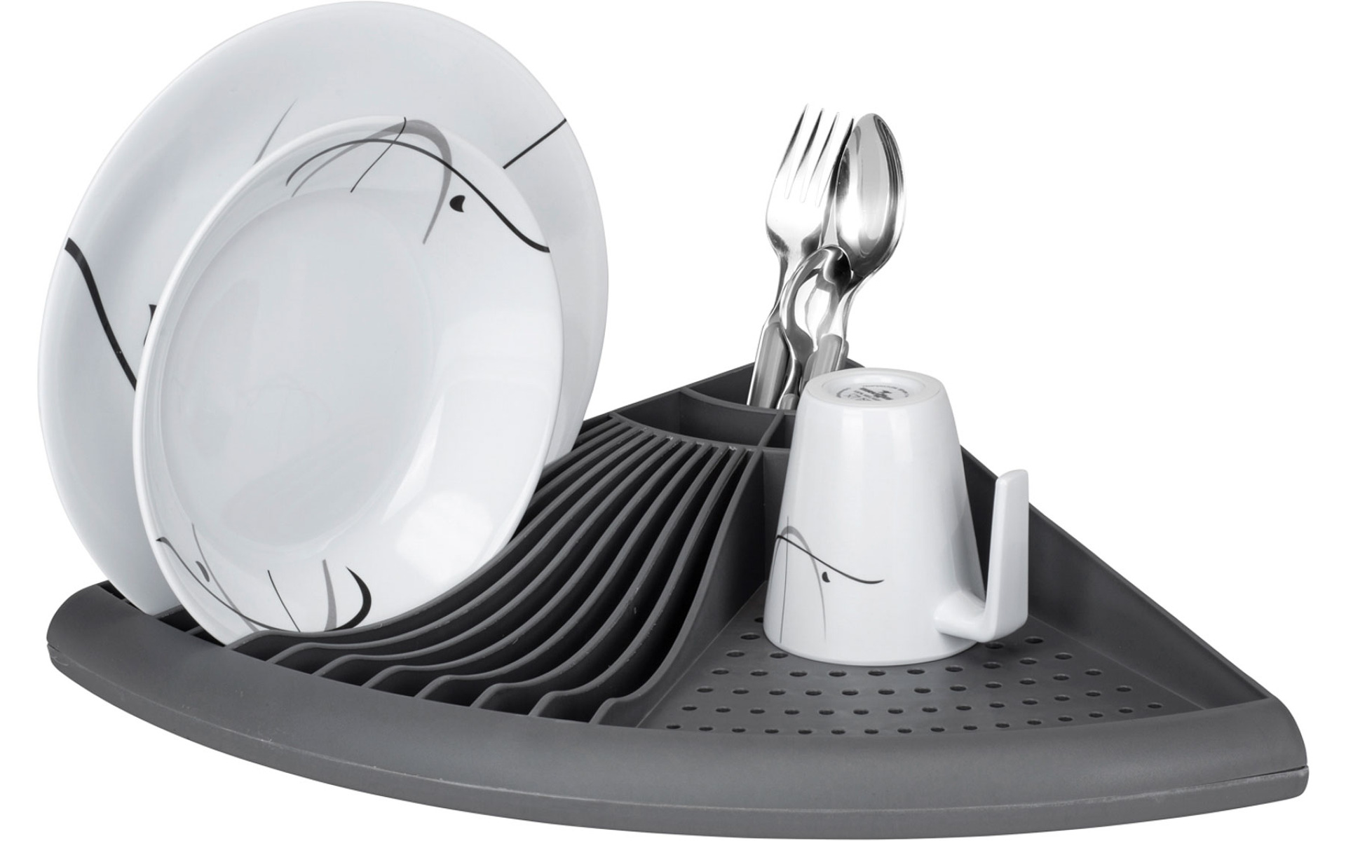 Kompaktní trojúhelníkový odkapávač nádobí ze 100% PP. Lehký, dvoudílný a odolný. Ideální do karavanu, kempu i malé kuchyně.