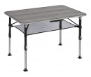 Praktickým doplňkem je síťovaná odkládací polička pod deskou, ideální pro ukládání drobností jako jsou ubrousky, nádobí nebo jiné kempingové potřeby. Stůl je velmi kompaktní – po složení má rozměry 100 × 70 × 5,5 cm, což umožňuje jeho snadné uložení do obytného vozu, kufru auta či pod lavici.